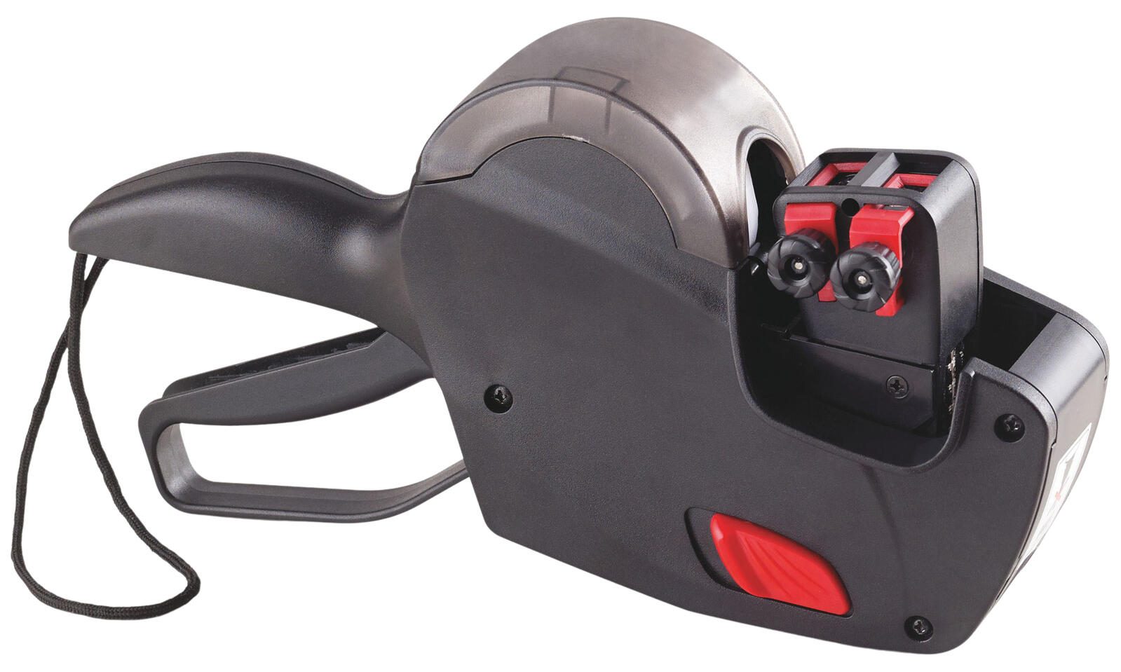 Das Gehäuse des Preisauszeichners besteht aus robustem Kunststoff und ist in einem unauffälligen Grauton gehalten. Die Etiketten, die mit diesem Gerät bedruckt werden, haben eine praktische Wellenrand-Form und messen 26,0 x 16,0 Millimeter. Die Ziffernhöhe ist mit 3,5 Millimetern in der oberen und 4,0 Millimetern in der unteren Zeile gut lesbar. Zusätzlich unterstützt das Gerät den Druck von Datum, was die Nachverfolgung von Angeboten oder Aktionen erleichtert.