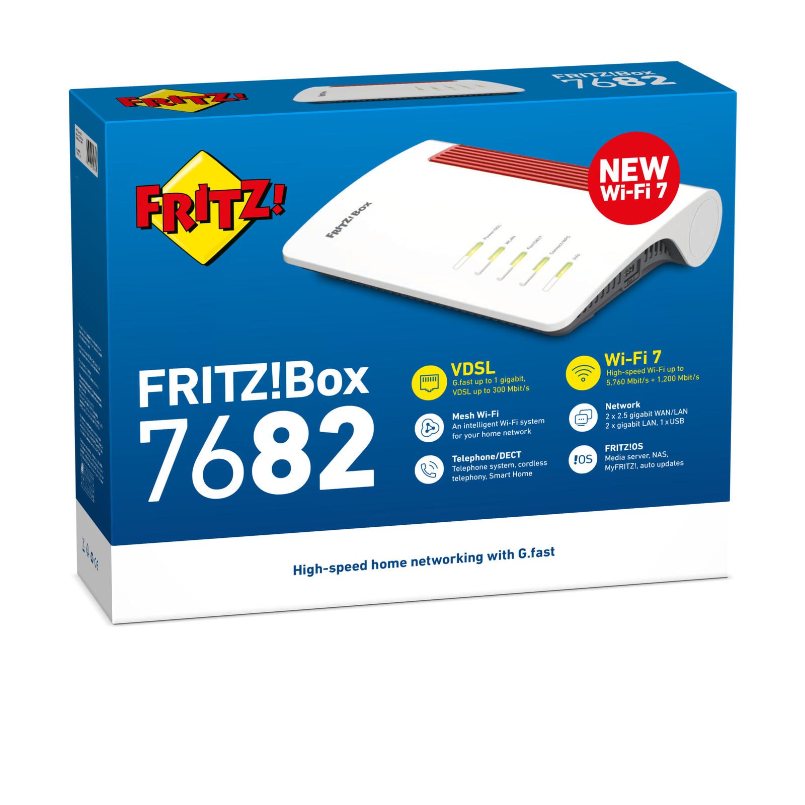FRITZ!Box 7682 Wireless Router WiFi 7 G.Fast 1x 2.5Gb WAN, 1x 2.5Gb LAN, 2x 1Gb LAN, 2x Analog, 1x DSL, 1x USB 20003063