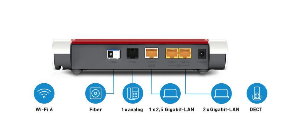 - WLAN-Router mit SFP-Steckplatz für ein FRITZ!SFP Glasfaser-Modul (AON und GPON im Lieferumfang enthalten)