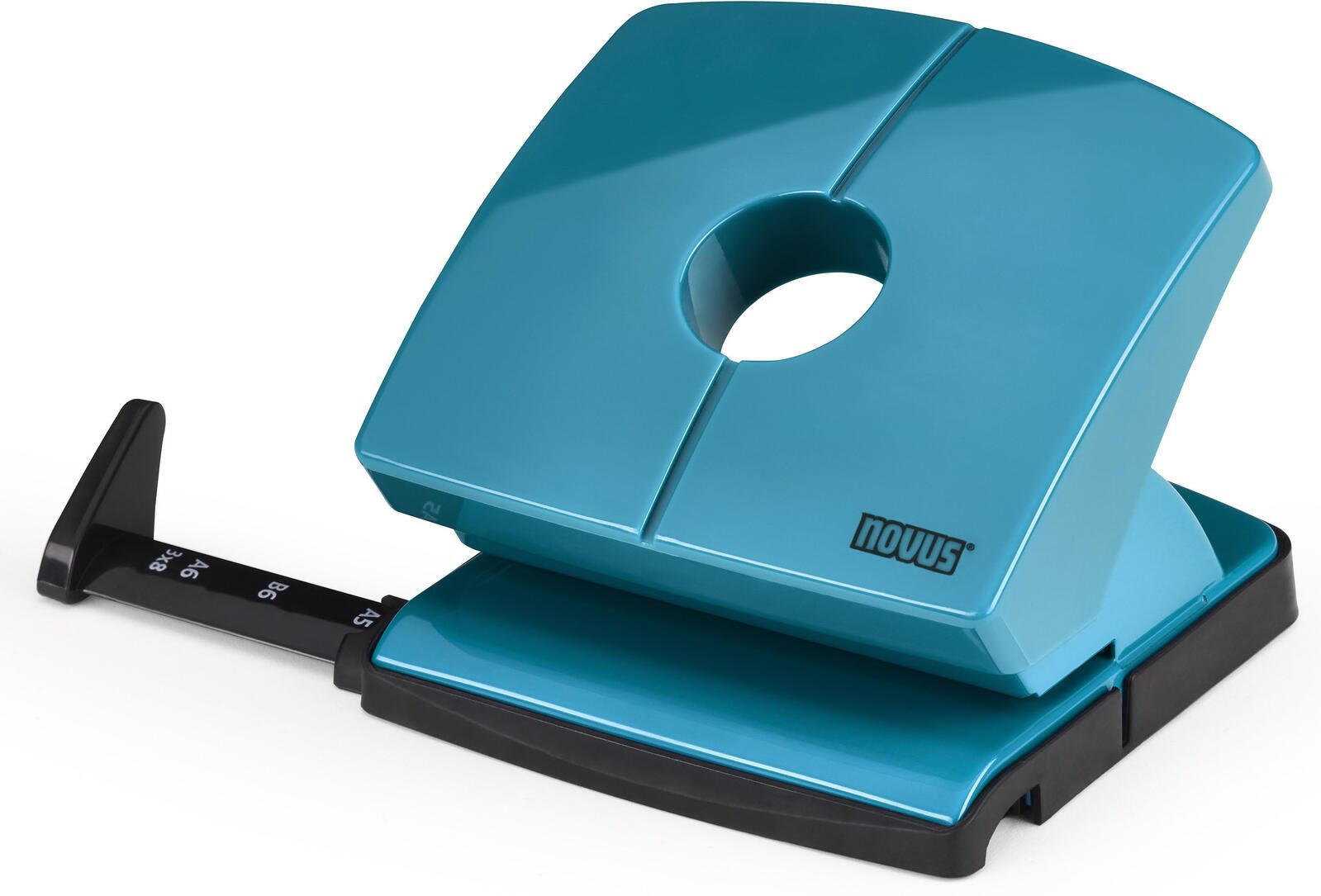 Der novus Locher B220 in der auffälligen Farbe bright petrol ist die perfekte Ergänzung für jedes Büro oder Homeoffice. Mit seinem modernen Design und der kräftigen türkisfarbenen Oberfläche zieht er nicht nur Blicke auf sich, sondern überzeugt auch durch seine Funktionalität. Dieser Bürolocher ist ideal für die Verarbeitung von Dokumenten im Format A4, A5, B5, B6, Folio 888 und US-Quart, was ihn zu einem vielseitigen Werkzeug für jeden Bedarf macht. Die runde Lochform sorgt für saubere und präzise Löcher, die das Abheften von Unterlagen erleichtern. Mit einer soliden Bauweise und einer praktischen Anschlagschiene ausgestattet, ermöglicht der Locher ein schnelles und genaues Arbeiten. Die verstellbaren Lochabstände bieten zudem Flexibilität, um verschiedene Papierformate mühelos zu lochen. Der schwarze Locherunterteil ergänzt das ansprechende Design und sorgt für Stabilität während des Gebrauchs. Ob für das Büro oder für den privaten Gebrauch, der novus Locher B220 bright petrol vereint stilvolles Aussehen mit hoher Funktionalität. Die Oberteilverriegelung ist nicht vorhanden, was den Zugriff auf das Lochwerkzeug erleichtert und die Handhabung vereinfacht. Mit diesem Locher machst du bei der Organisation deiner Dokumente einen stilvollen und praktischen Schritt nach vorne. Die Kombination aus ansprechender Farbe und durchdachtem Design macht den novus Locher B220 zu einem unverzichtbaren Hilfsmittel für alle, die Wert auf Qualität und Ästhetik legen. Erlebe die Vorteile eines zuverlässigen Bürolochers, der nicht nur funktional ist, sondern auch Freude beim Arbeiten bereitet.Technische Daten
