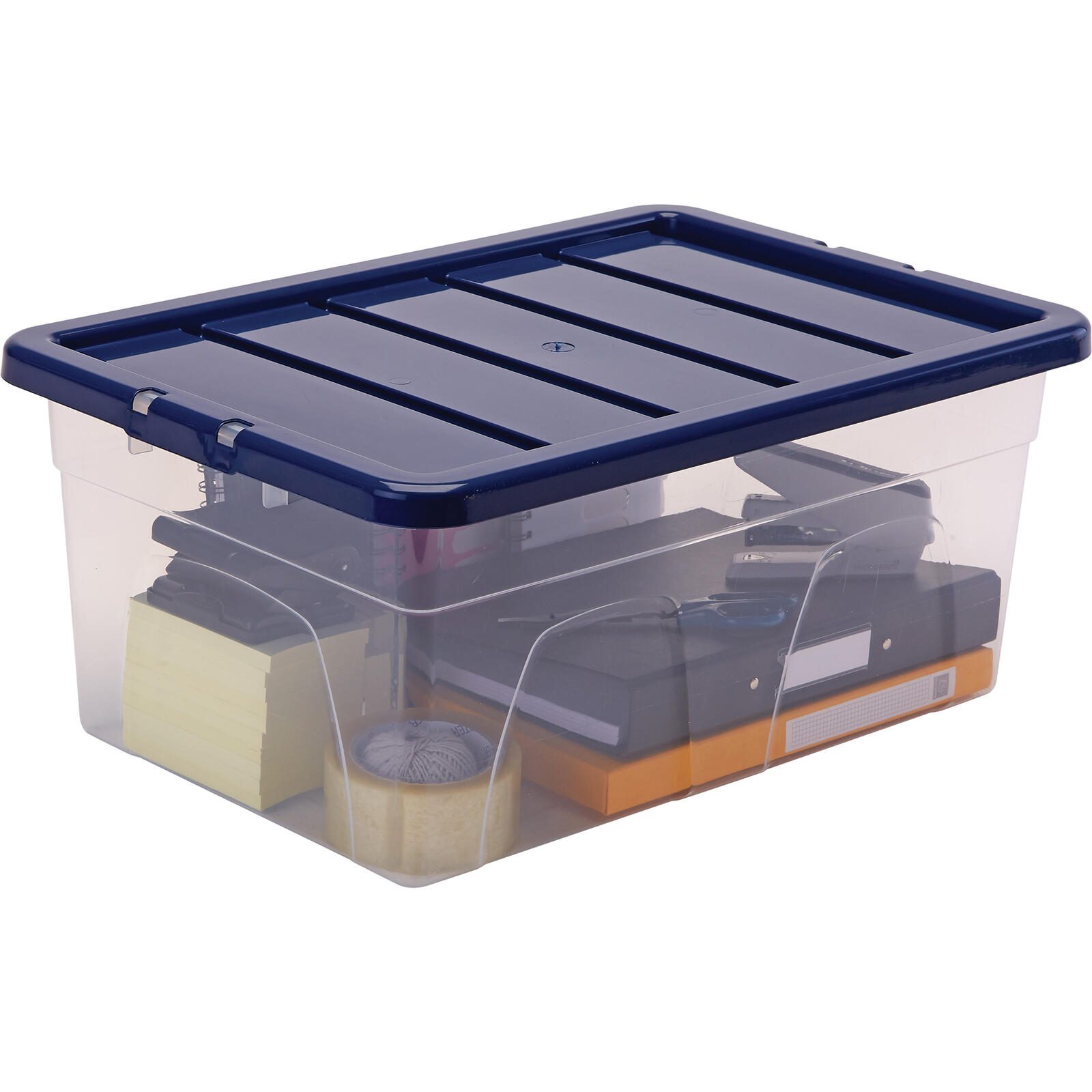 Die Bankers Box Aufbewahrungsboxen mit einem Fassungsvermögen von 38,0 Litern bieten eine vielseitige und praktische Lösung zur sicheren Aufbewahrung verschiedenster Gegenstände. Gefertigt aus robustem Kunststoff, zeichnen sich diese Boxen durch ihre Langlebigkeit und Widerstandsfähigkeit aus. Die transparente blaue Farbe ermöglicht eine einfache Sicht auf den Inhalt, sodass Sie jederzeit den Überblick behalten.