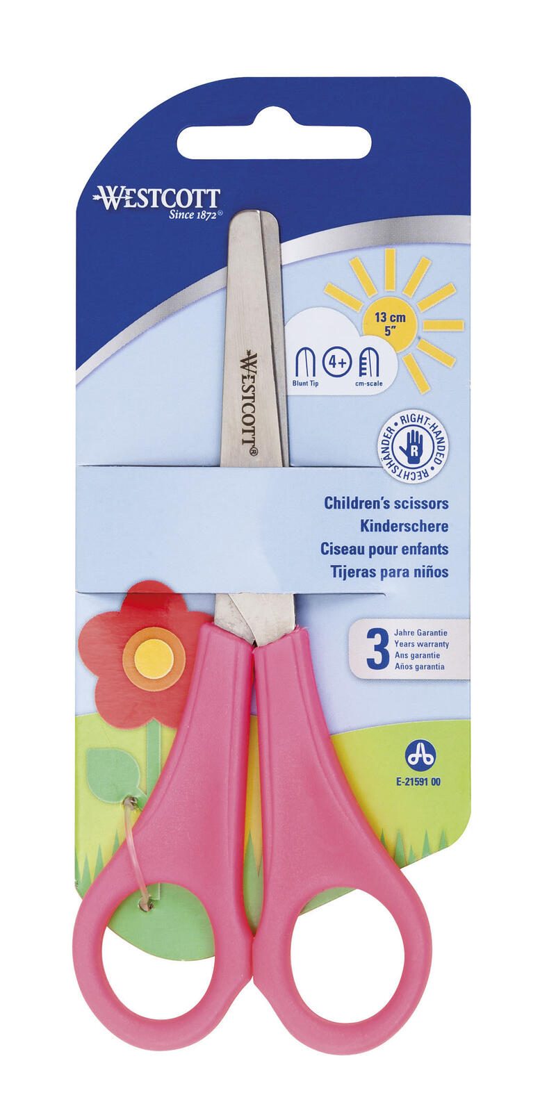 Die WESTCOTT Kinderschere mit einer Länge von 13 cm ist das ideale Werkzeug für kreative Kinder ab 4 Jahren. In einem ansprechenden Farbton von pink gestaltet, bringt sie nicht nur Freude beim Basteln, sondern fördert auch die motorischen Fähigkeiten und die Kreativität. Die runde Form der Schere sorgt dafür, dass sie sicher in den Händen von kleinen Künstlern liegt und gleichzeitig Verletzungen vorbeugt, was sie zu einem perfekten Begleiter für den ersten Umgang mit Scheren macht. Die Klinge dieser hochwertigen Bastelschere besteht aus robustem Stahl, was eine langlebige und zuverlässige Nutzung garantiert. So können Kinder problemlos Papier, Pappe und andere Bastelmaterialien schneiden, ohne dass die Schere schnell stumpf wird. Der Griff ist aus leichtem und strapazierfähigem Kunststoff gefertigt, was für eine angenehme Handhabung sorgt und das Schneiden zu einem mühelosen Erlebnis macht. Die WESTCOTT Kinderschere ist nicht nur funktional, sondern auch ein stylisches Accessoire für jeden Basteltisch. Ihr pinker Farbton zieht die Aufmerksamkeit auf sich und sorgt dafür, dass die Schere schnell gefunden wird, egal ob im Rucksack oder auf dem Tisch. Diese Schere ist ein unverzichtbares Werkzeug für kleine Bastler, die ihre kreativen Ideen verwirklichen möchten. Mit der WESTCOTT Kinderschere 13 cm können Kinder spielerisch lernen und ihre Fantasie entfalten. Die Kombination aus Sicherheit, Qualität und ansprechendem Design macht sie zu einer hervorragenden Wahl für Eltern, die ihren Kindern einen sicheren und kreativen Zugang zur Welt des Bastelns ermöglichen möchten.Technische Daten