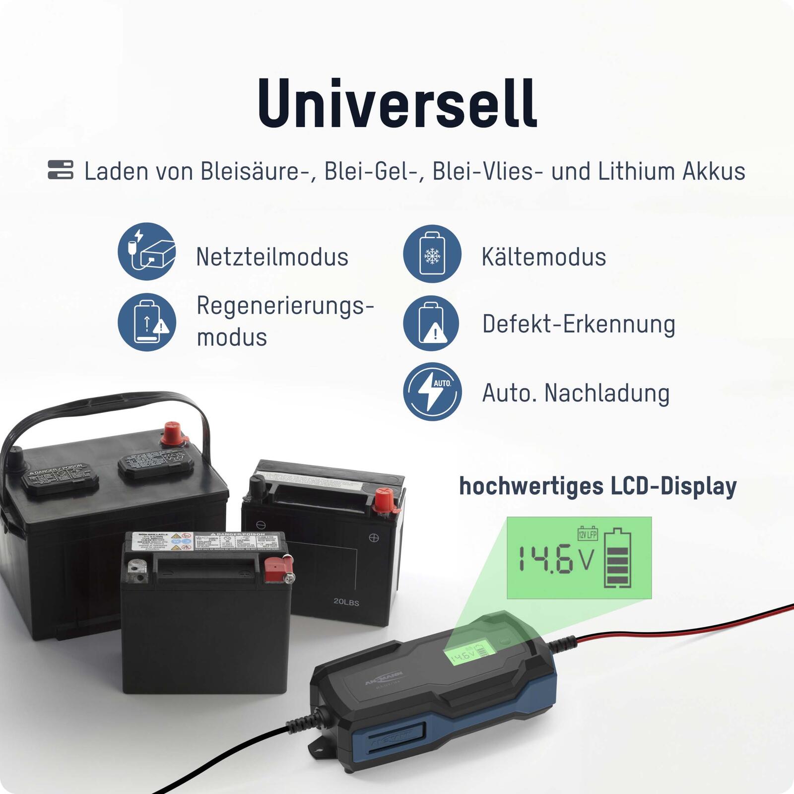 - geeignet für: Blei-Säure-, Blei-Gel- und Blei-Vlies-Batterien, LiFePO4-Batterien