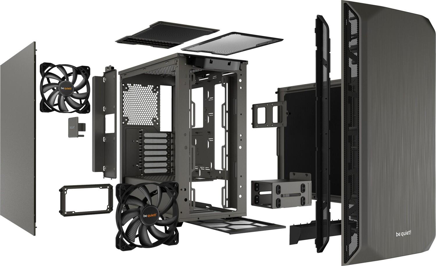 Das Pure Base 500 bietet einen großzügigen Innenraum um High-End Grafikkarten und Kühler von bis zu 190mm Höhe zu installieren. Lüfter oder Radiatoren bis zu 360mm können leicht an der Vorderseite installiert werden. Die Oberseite bietet Platz für Lüfter und Radiatoren mit einer Größe von bis zu 240mm.