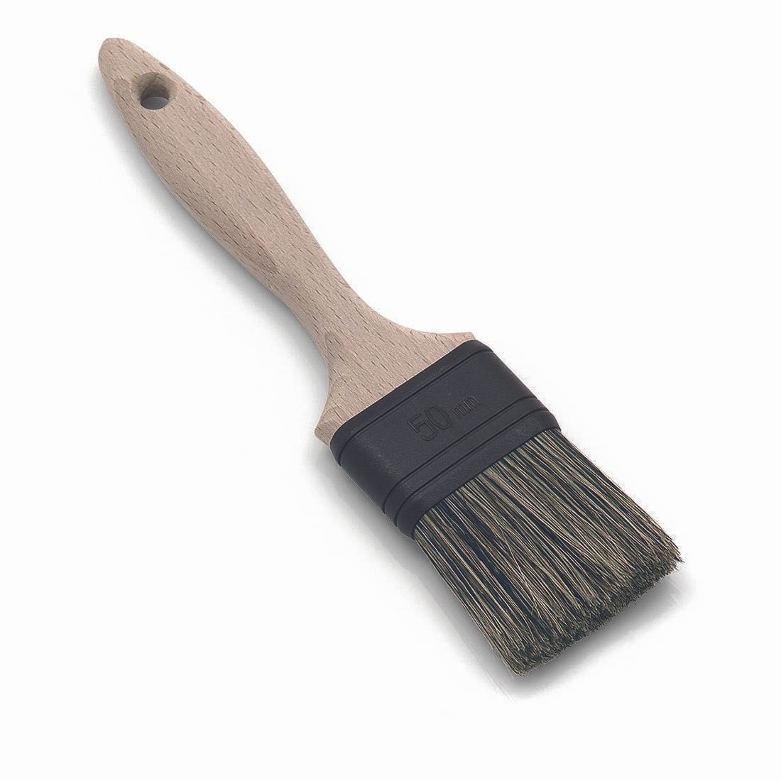 - Hochwertige reine graue Chinaborste. Kunststoffzwinge, Holzstiel unlackiert.