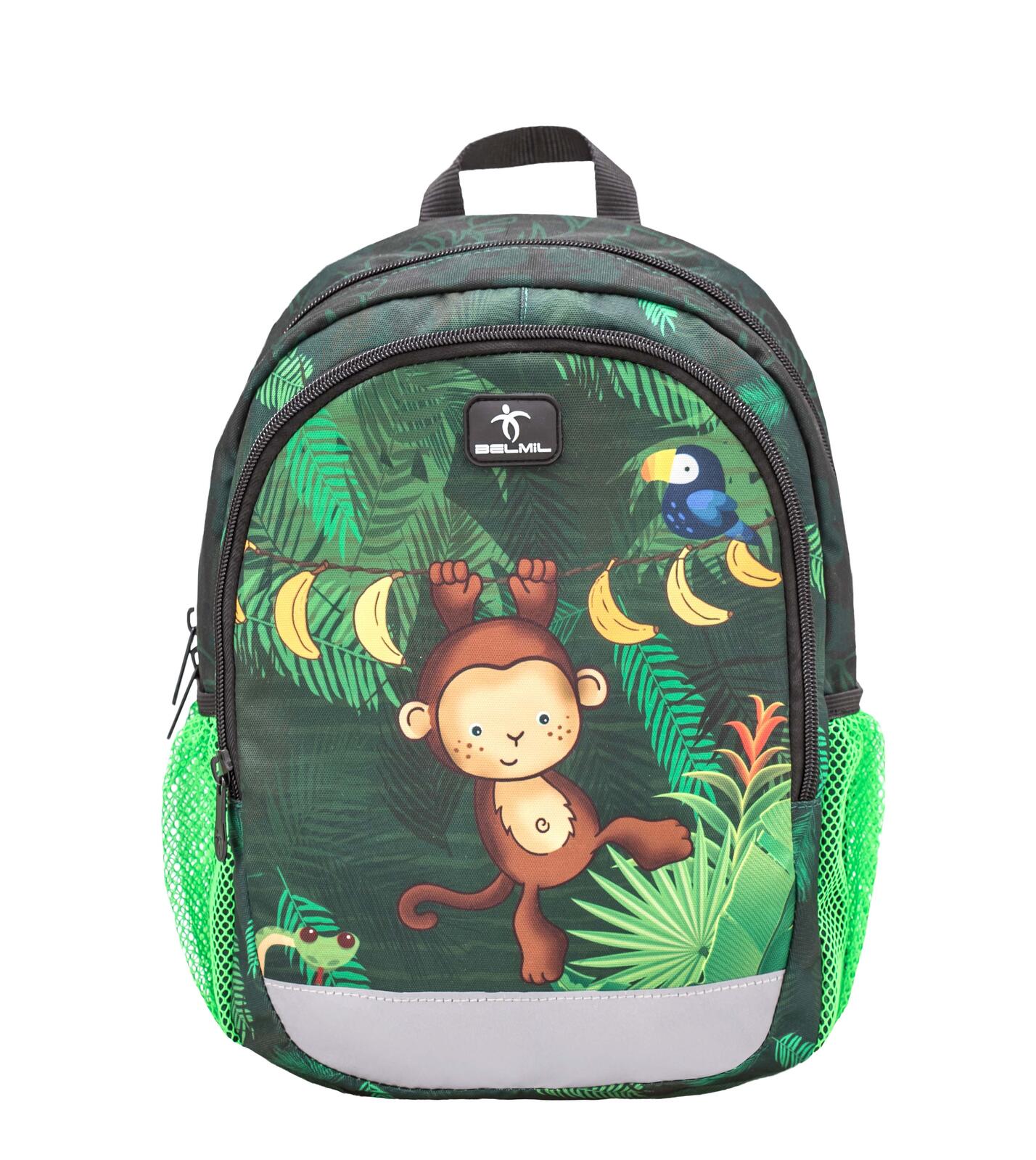 Im Inneren des Rucksacks befinden sich ein großes Hauptfach und eine Fronttasche, die die Organisation von Spielzeug, Kleidung und anderen Gegenständen erleichtern. Der Belmil Kinderrucksack Jungle 2020 besteht aus strapazierfähigem Polyester, das langlebig und pflegeleicht ist – perfekt für den täglichen Gebrauch im Kindergarten oder auf Ausflügen. Mach dich bereit für spannende Abenteuer mit dem Belmil Kinderrucksack Jungle 2020!