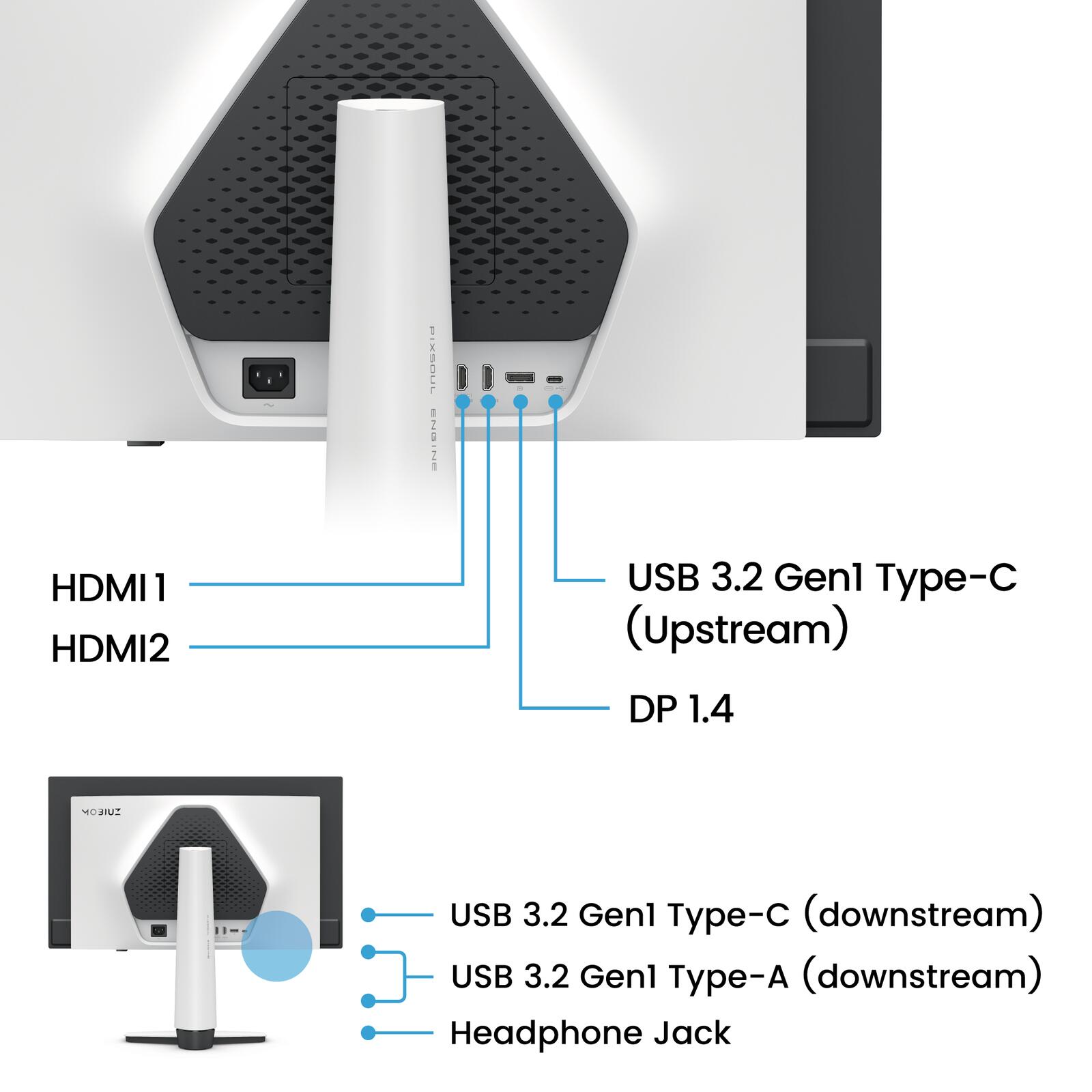 - Low Blue Light, Color Shuttle, PixSoul Engine mit AI Farb- & Detailverbesserungen, Kensington Support, KVM