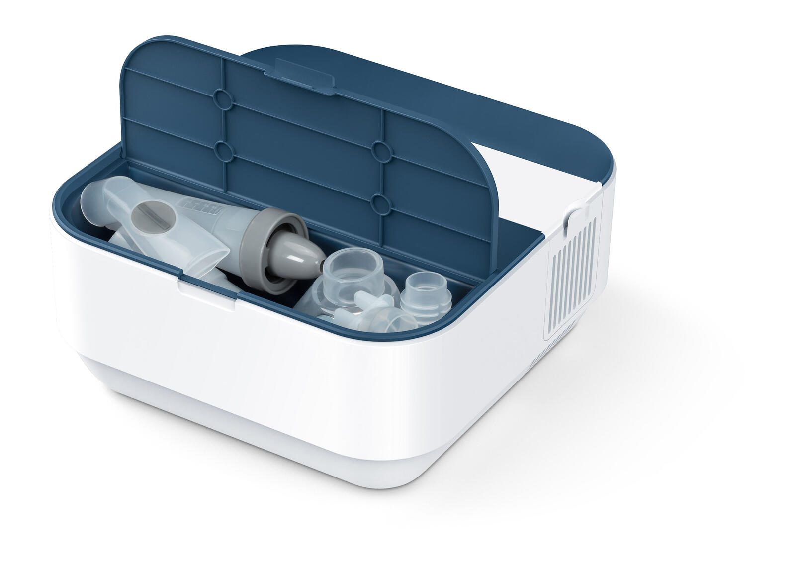 - Zubehör: Inhalator, Vernebler, Mundstück, Nasenstück, Nasendusche, Erwachsenenmaske, Kindermaske, Winkelstück, Druckluft-Schlauch, 10 Filter