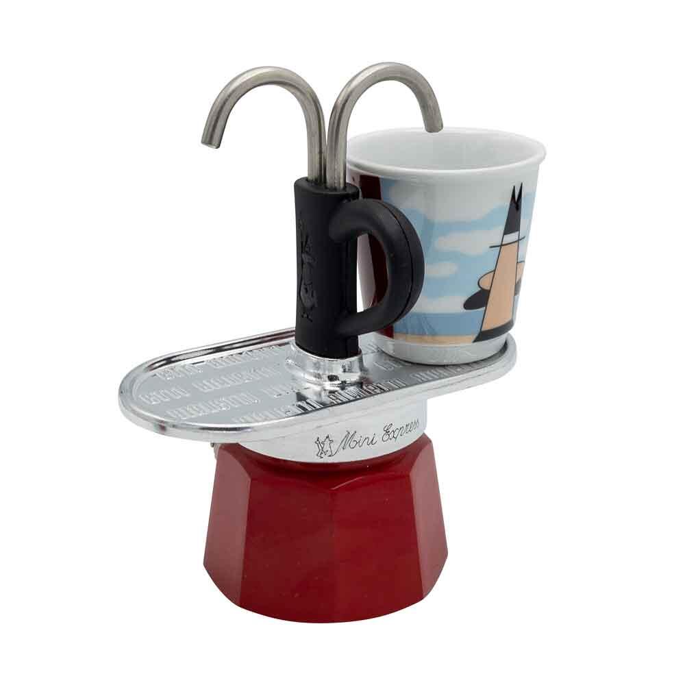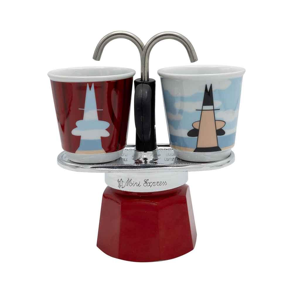 Bialetti Mini Express - Espressokocher-Set - rot + 2 Becher in René Margritte-Design