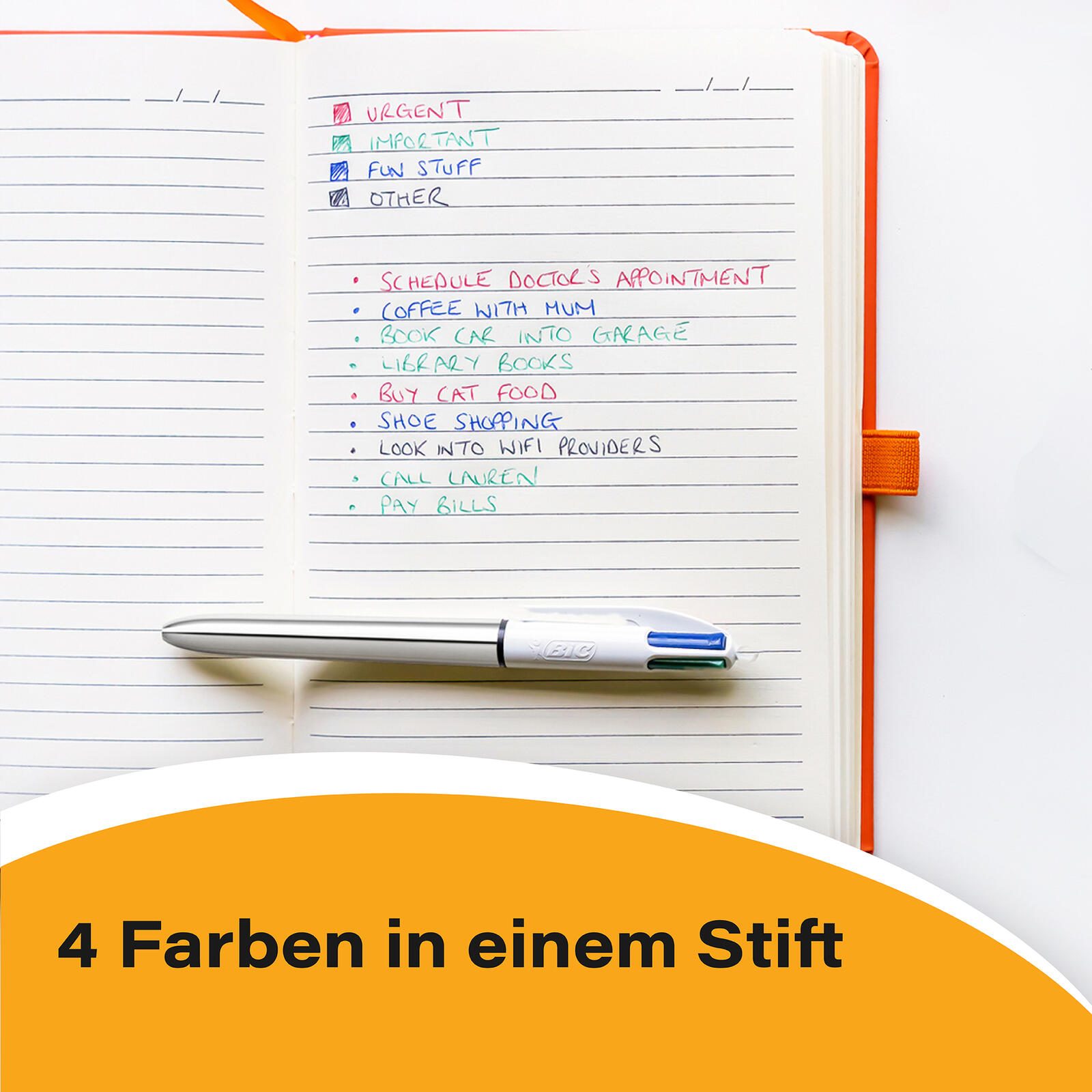 Entdecke die Welt der Farben mit dem BIC Kugelschreiber 4 Colours SHINE und bringe mehr Kreativität in deinen Alltag. Ein Must-Have für alle, die Wert auf Qualität, Funktionalität und Stil legen.