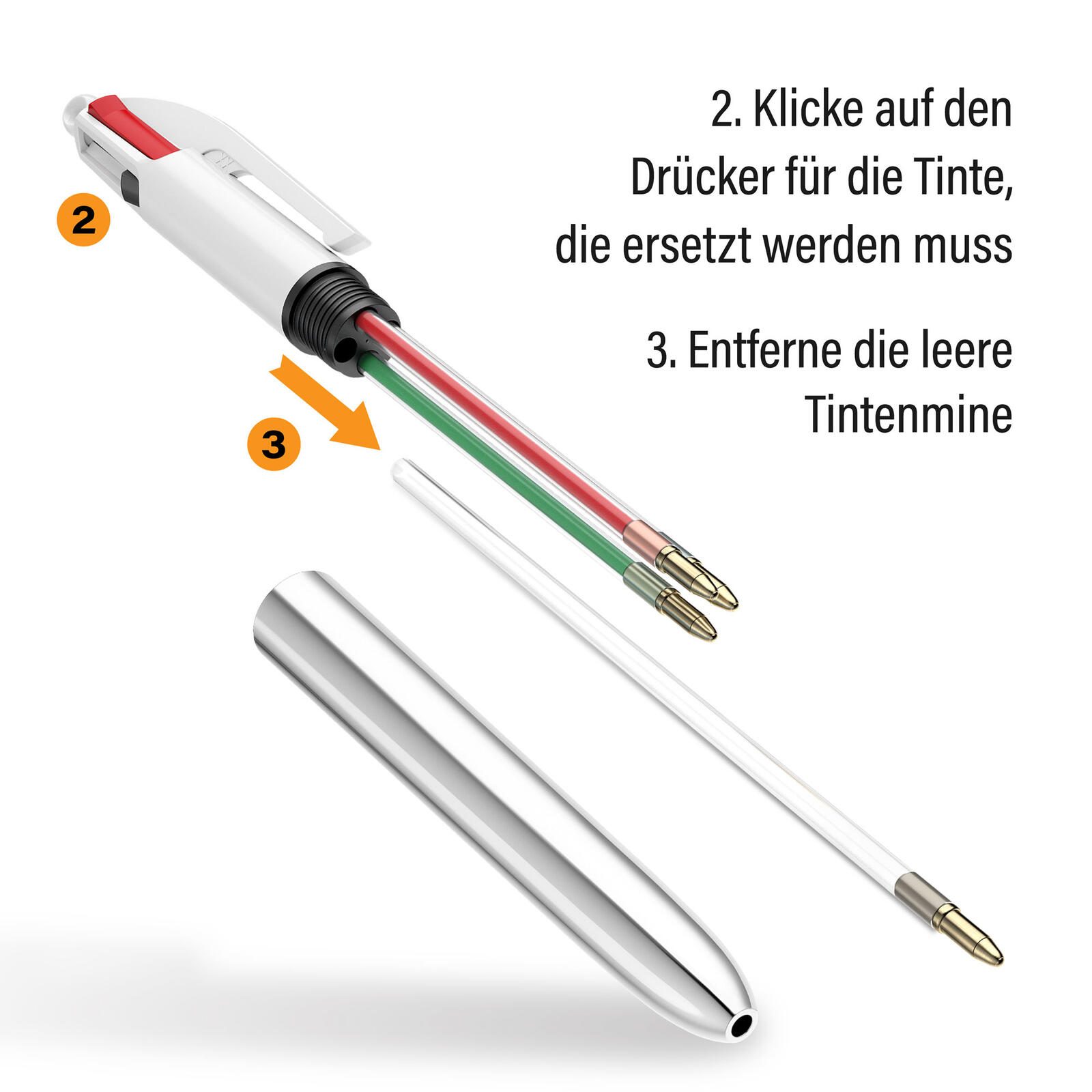 Dank der speziellen Griffart liegt der Stift angenehm in der Hand und ermöglicht ein müheloses Schreiben. Der BIC 4 Colours SHINE Kugelschreiber wird mit passenden Ersatzminen geliefert, so dass du lange Freude an diesem hochwertigen Schreibgerät hast.