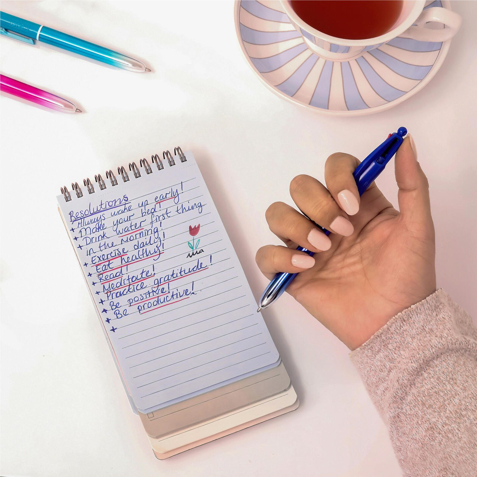 Der Kugelschreiber verfügt über einen praktischen Clip, mit dem er einfach an Notizbüchern, Taschen oder Hemdbrusttaschen befestigt werden kann. Er gehört zur Serie „4-Colours Smooth Gradient“ von BIC und wird von der BIC Deutschland GmbH & Co. OHG hergestellt. Die Kombination aus Funktionalität, Qualität und ansprechendem Design macht diesen Stift zu einem zuverlässigen Begleiter im Alltag.