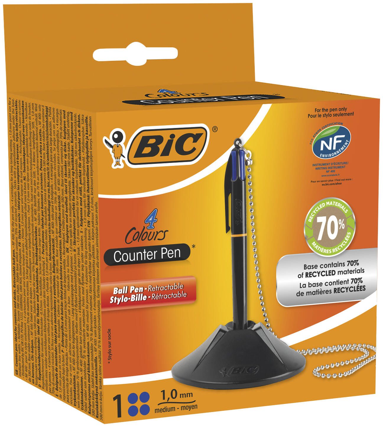 Der Kugelschreiber ist mit einem neuen Sockel ausgestattet, der zu 70 % aus recyceltem ABS-Kunststoff besteht. Dies unterstreicht das Engagement für Nachhaltigkeit und reduziert den ökologischen Fußabdruck, ohne die Qualität zu beeinträchtigen. Die Kettenlänge von 58 cm bietet ausreichend Bewegungsfreiheit, während der Kugelschreiber stets griffbereit bleibt. Mit den Maßen von 10,05 x 14,6 cm ist der Ständer kompakt und platzsparend gestaltet und passt perfekt auf jeden Schreibtisch.