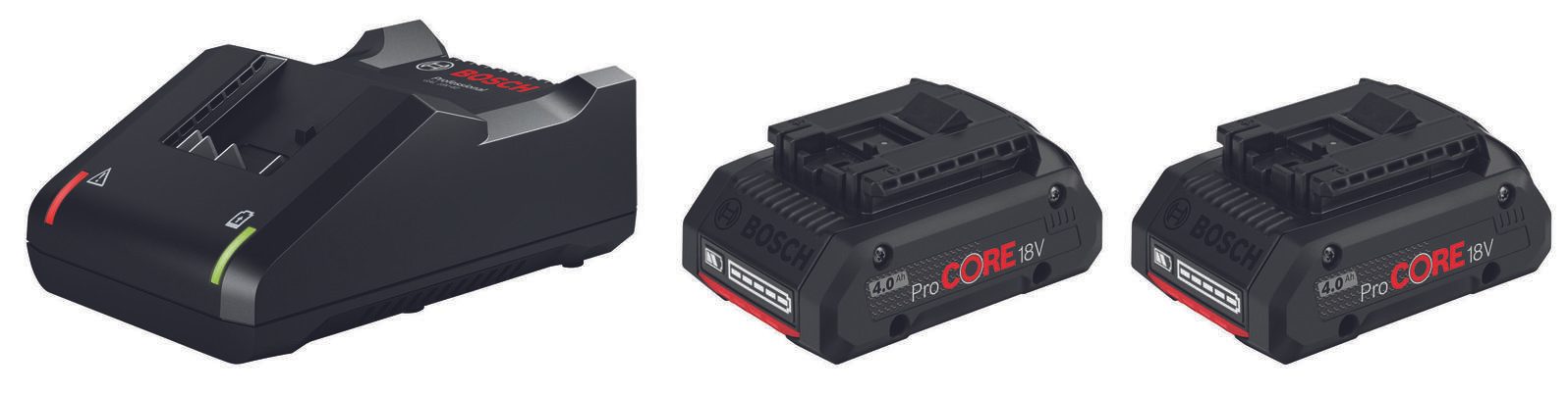 - Lieferung inkl.: 2x ProCORE 18V 4,0 Ah, Schnellladegerät GAL 18V-40 Professional
