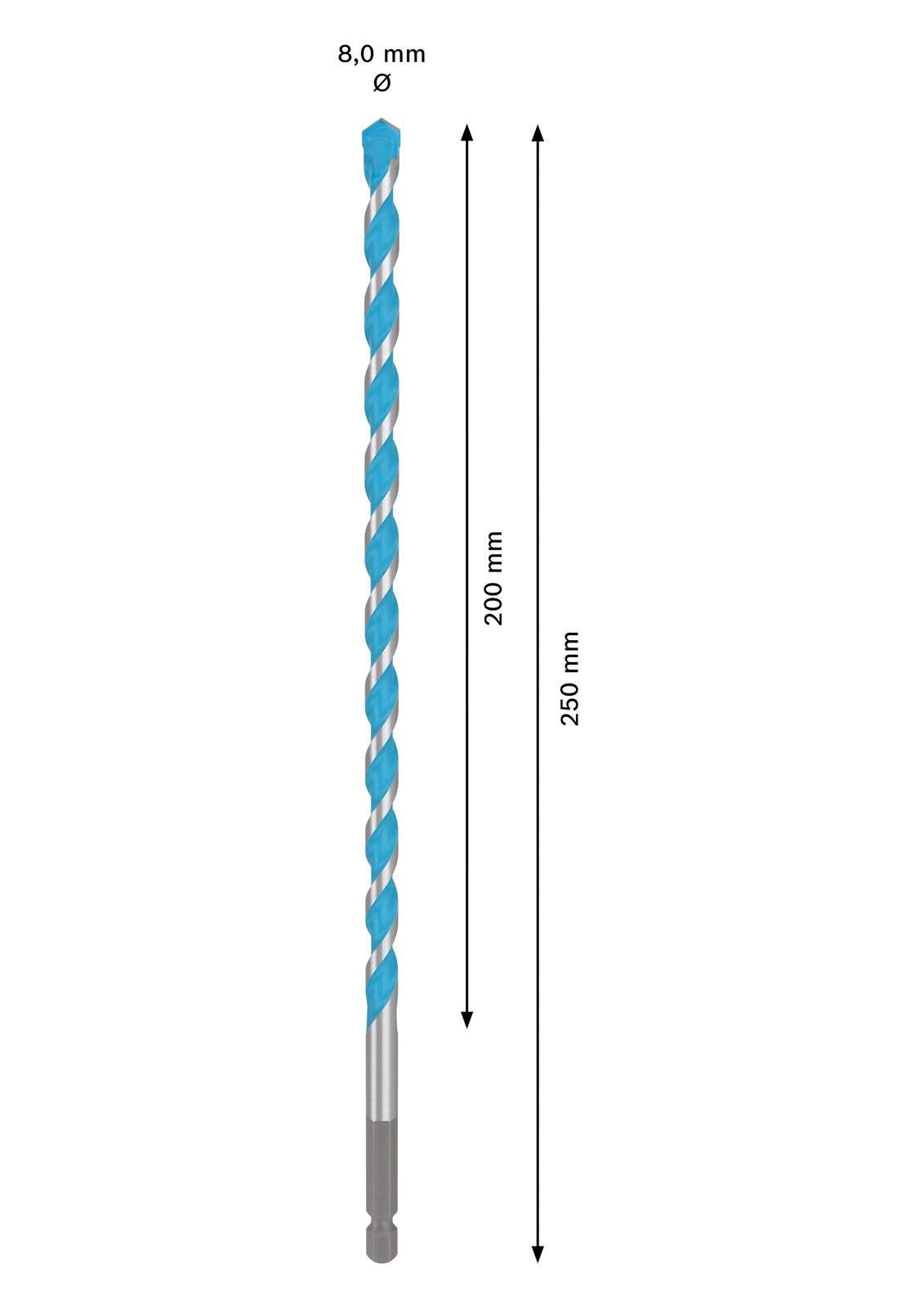 Der BOSCH Betonbohrer EXPERT HEX-9 Multi Construction ist ein vielseitiger Bohrer, der speziell für anspruchsvolle Anwendungen in verschiedenen Materialien entwickelt wurde. Mit einem Durchmesser von 8 mm und einer Gesamtlänge von 250 mm sowie einer effektiven Bohrlänge von 200 mm bietet dieser Bohrer eine optimale Kombination aus Reichweite und Stabilität. Die Serie EXPERT HEX-9 Multi Construction steht für höchste Qualität und Langlebigkeit, die durch die präzise Verarbeitung und die robusten Werkstoffe gewährleistet wird.