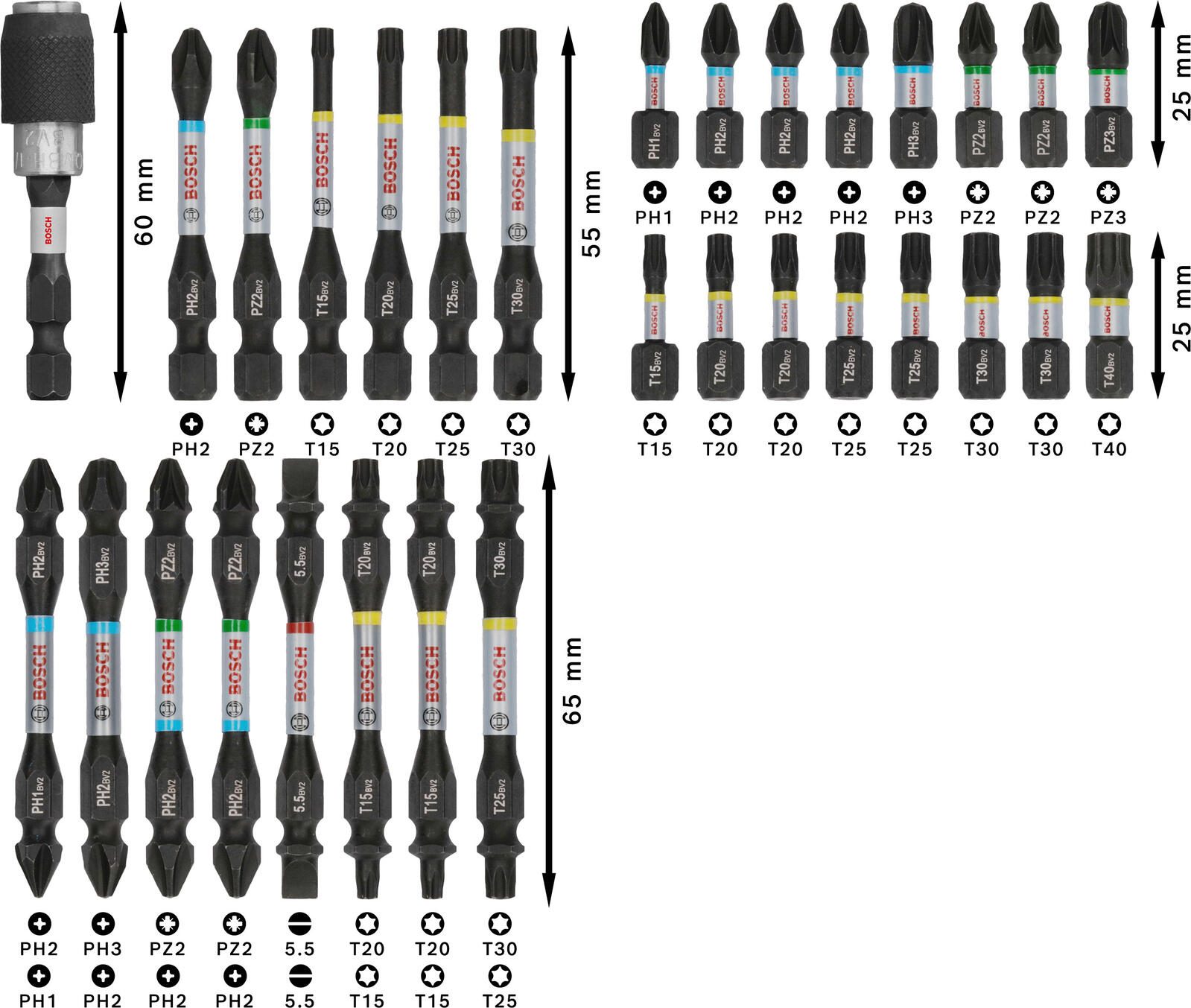 Die Serie PRO Impact steht für besonders robuste und langlebige Werkzeuge, die auch bei intensivem Gebrauch zuverlässig ihre Leistung erbringen. Das Set ist Teil der Bohrer- und Schrauberbit-Familie von Bosch und wurde unter der Bezeichnung „Bosch PRO Schrauberbit-Set 31t“ vertrieben. Die Bits sind so konzipiert, dass sie hohen Drehmomenten standhalten und somit auch für den Einsatz mit Schlagbohrmaschinen geeignet sind, was die Arbeit effizienter und komfortabler macht.
