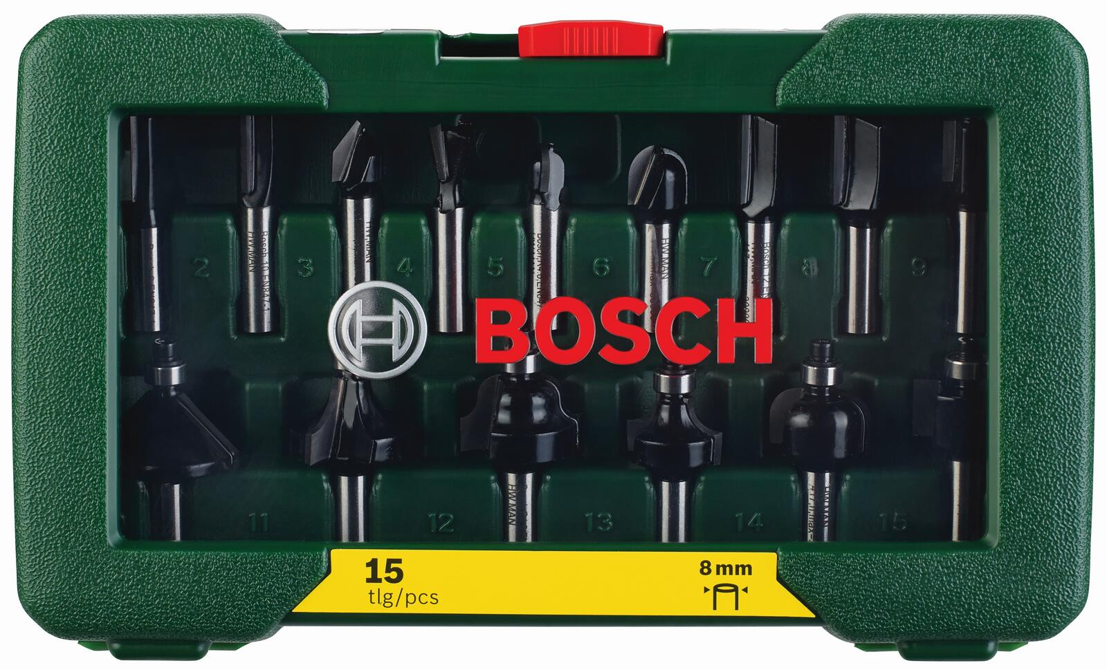 Das BOSCH Fräser-Set 15-teilig 8 mm ist die ideale Wahl für anspruchsvolle Heimwerker und Profis, die auf der Suche nach hochwertigen Werkzeugen sind. Mit insgesamt 15 präzise gefertigten Fräsern bietet dieses Set eine hervorragende Auswahl für verschiedene Anwendungen. Die Fräser sind speziell für die Bearbeitung von Hartholz, Massivholz, MDF, Spanplatten, Sperrholz und Weichholz konzipiert, was dir eine hohe Flexibilität bei deinen Projekten ermöglicht. Jeder Fräser in diesem Set hat einen Schaftdurchmesser von 8 mm, was eine einfache Handhabung und eine sichere Befestigung in der Fräse gewährleistet. Die sorgfältige Verarbeitung der Fräser sorgt für eine lange Lebensdauer und eine exzellente Schnittqualität. Egal, ob du präzise Kanten fräsen, Nuten setzen oder dekorative Profile erstellen möchtest, mit diesem Set bist du bestens ausgestattet. Die Vielseitigkeit des BOSCH Fräser-Sets kommt besonders bei der Bearbeitung unterschiedlicher Materialien zum Tragen. Du kannst sowohl robuste Harthölzer als auch weichere Materialien mühelos bearbeiten, was dir ermöglicht, eine breite Palette von Projekten umzusetzen. Die Auswahl der Fräser ist so gestaltet, dass sie den unterschiedlichen Anforderungen in der Holzverarbeitung gerecht wird und dir hilft, professionelle Ergebnisse zu erzielen. Die Verwendung von BOSCH Produkten steht für Qualität und Zuverlässigkeit. Das Fräser-Set ist nicht nur funktional, sondern auch benutzerfreundlich, sodass du dich ganz auf dein Projekt konzentrieren kannst. Mit dem BOSCH Fräser-Set 15-teilig 8 mm investierst du in ein hochwertiges Werkzeug, das dir bei der Umsetzung deiner kreativen Ideen zur Seite steht.Technische Daten