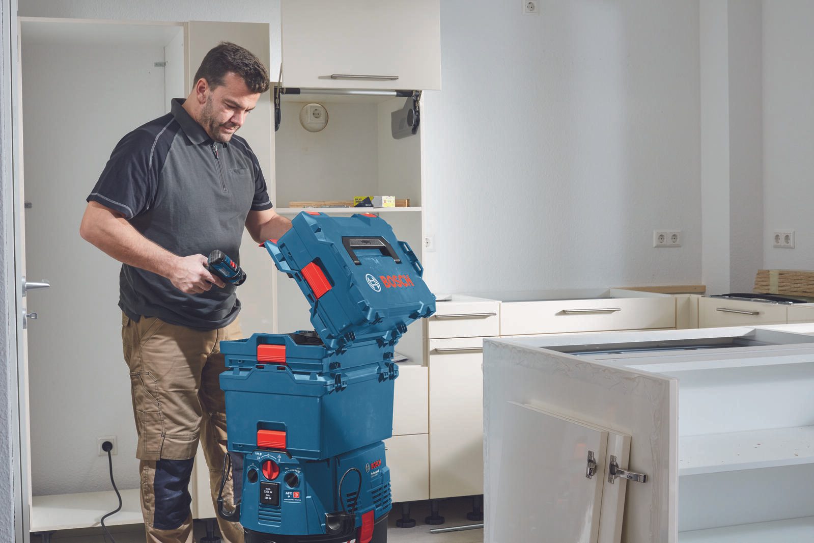 Der BOSCH Professional L-BOXX 238 Werkzeugkasten bietet eine durchdachte Lösung für die sichere und praktische Aufbewahrung Ihrer Elektrowerkzeuge. Mit einem Gewicht von nur 2.4 kg ist dieser Werkzeugkasten leicht zu transportieren, während die kompakten Abmessungen von 44,2 x 35,7 x 25,3 cm ihn ideal für den Einsatz in Werkstätten oder auf Baustellen machen. Der Kasten besteht aus robustem ABS-Kunststoff, der nicht nur für Langlebigkeit sorgt, sondern auch eine hohe Widerstandsfähigkeit gegenüber Stößen und Kratzern bietet. Die L-BOXX 238 ist abschließbar und unbefüllt, was Ihnen die Möglichkeit gibt, Ihre Werkzeuge individuell zu organisieren und sicher zu verwahren. Die maximale Belastbarkeit von 25 kg gewährleistet, dass auch schwerere Werkzeuge problemlos Platz finden. Der praktische Tragegriff an der Oberseite sorgt für einen bequemen Transport, während der Riegelverschluss für zusätzliche Sicherheit sorgt. Entwickelt für die Verwendung mit verschiedenen Bosch Elektrowerkzeugen, einschließlich GKM 18V-50 Professional, GKS 18V-57-2 Professional und 18V-70 L Professional, ist dieser Werkzeugkasten die perfekte Ergänzung für Profis und Hobbyhandwerker. Die Kombination aus Funktionalität und hochwertigem Design macht die L-BOXX 238 zu einer unverzichtbaren Lösung für alle, die Wert auf Ordnung und Sicherheit legen. Die ansprechende Farbgebung in Blau und Schwarz verleiht dem Werkzeugkasten zudem ein modernes Aussehen, das sich harmonisch in jede Werkstattumgebung einfügt. Mit der BOSCH Professional L-BOXX 238 investieren Sie in ein Produkt, das Ihnen hilft, Ihre Werkzeuge sicher und effizient zu organisieren.Technische Daten