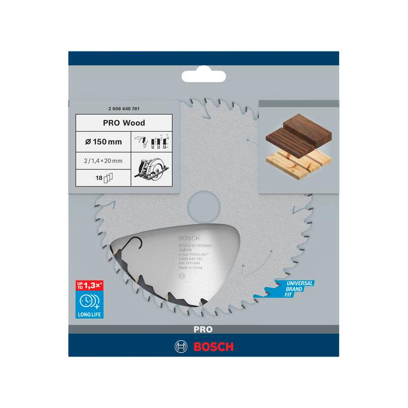 Dank der sorgfältigen Verarbeitung und der bewährten Bosch PRO Wood Serie gewährleistet das Sägeblatt eine lange Lebensdauer und konstante Schnittergebnisse. Es ist für Anwender konzipiert, die Wert auf Präzision und Effizienz legen und dabei vielseitig arbeiten möchten. Die Abmessungen von 150 mm Durchmesser und 20 mm Bohrung ermöglichen eine einfache Montage auf gängigen Kreissägen.