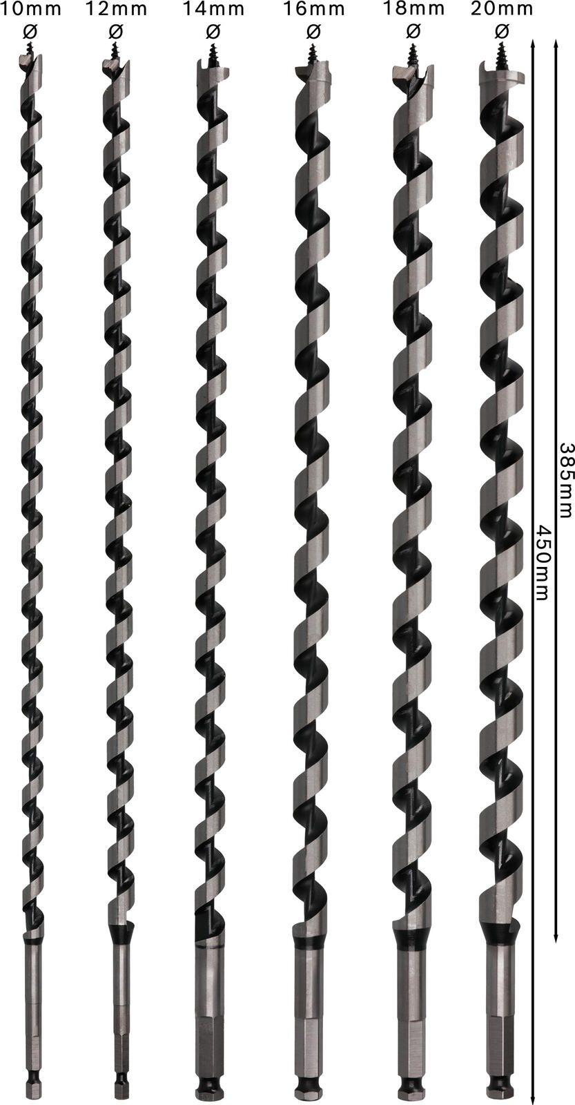 Das Set umfasst insgesamt sechs verschiedene Bohrer, die dir eine Vielzahl von Anwendungen ermöglichen. Egal, ob du Möbel baust, Regale montierst oder kreative Holzprojekte umsetzt, dieses Set bietet dir die Flexibilität, die du benötigst. Die Schlangenbohrer sind so konzipiert, dass sie auch in schwer zugänglichen Bereichen eingesetzt werden können, wodurch sie sich perfekt für komplexe Arbeiten eignen.