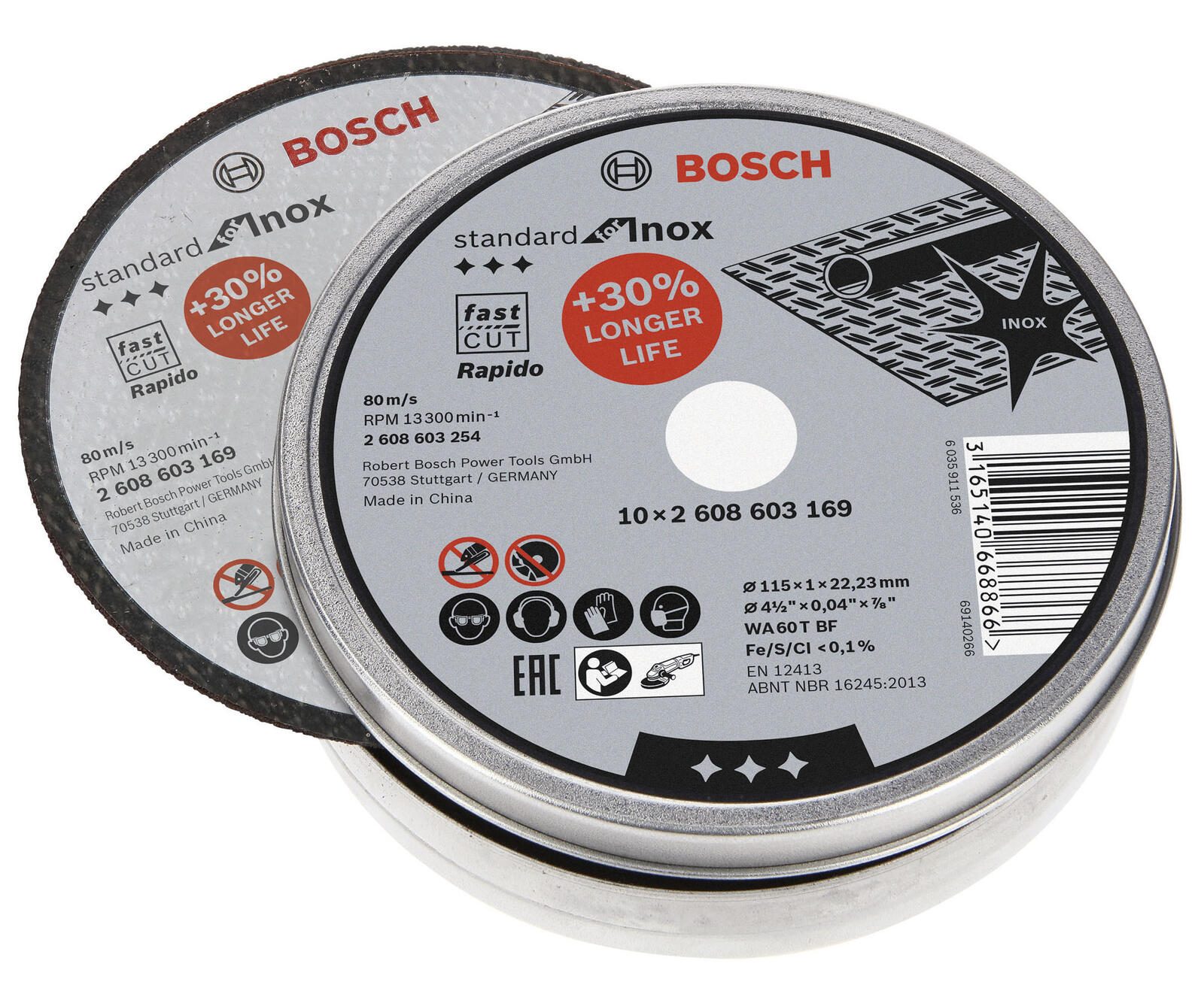 Die BOSCH Trennscheiben Standard for Inox sind speziell für die Bearbeitung von rostfreiem Stahl konzipiert und bieten Ihnen eine zuverlässige Lösung für präzise Schneidarbeiten. Mit einem Durchmesser von 115 mm und einer Dicke von nur 1 mm ermöglichen diese Trennscheiben einen schnellen und sauberen Schnitt, ohne dabei die Materialintegrität zu beeinträchtigen. Die innovative Konstruktion aus Aluminiumoxid sorgt für eine hohe Standzeit und eine effektive Leistung, sodass Sie auch bei intensiven Anwendungen von einer langen Lebensdauer profitieren. Die Verpackungseinheit umfasst 10 Stück, was Ihnen eine kosteneffiziente Lösung für Ihre Projekte bietet. Die Trennscheiben sind mit einem Dorntyp von 22,23 mm ausgestattet, was eine einfache Montage auf den gängigen Winkelschleifern ermöglicht. Die maximale unterstützte Geschwindigkeit von 13.300 U/min gewährleistet, dass Sie auch bei hohen Drehzahlen präzise Ergebnisse erzielen können. Ein herausragendes Merkmal dieser Trennscheiben ist ihre Fähigkeit, Eisen, Schwefel und chlorierte Füllstoffe zu vermeiden, was sie zu einer idealen Wahl für empfindliche Anwendungen macht. Sie sind für den professionellen Einsatz in der Metallbearbeitung sowie für Heimwerker geeignet, die Wert auf Qualität und Effizienz legen. Die BOSCH Trennscheiben Standard for Inox sind die perfekte Wahl für jeden, der auf der Suche nach hochwertigen Schneidlösungen ist. Durch ihre spezielle Eignung für rostfreien Stahl garantieren sie nicht nur optimale Schnitte, sondern auch ein hohes Maß an Sicherheit und Benutzerfreundlichkeit. Vertrauen Sie auf die bewährte Qualität von Bosch und optimieren Sie Ihre Schneidarbeiten mit diesen erstklassigen Trennscheiben.Technische Daten