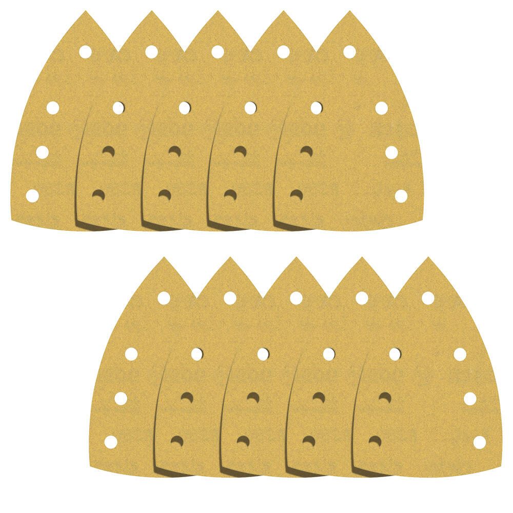 Jedes Schleifblatt hat die Maße von 100,0 x 150,0 mm und ist mit einer 7-fach-Lochung ausgestattet, was eine optimale Staubabsaugung während des Schleifvorgangs gewährleistet. Diese Funktion trägt nicht nur zu einem sauberen Arbeitsumfeld bei, sondern erhöht auch die Lebensdauer der Schleifblätter und verbessert die Schleifergebnisse.
