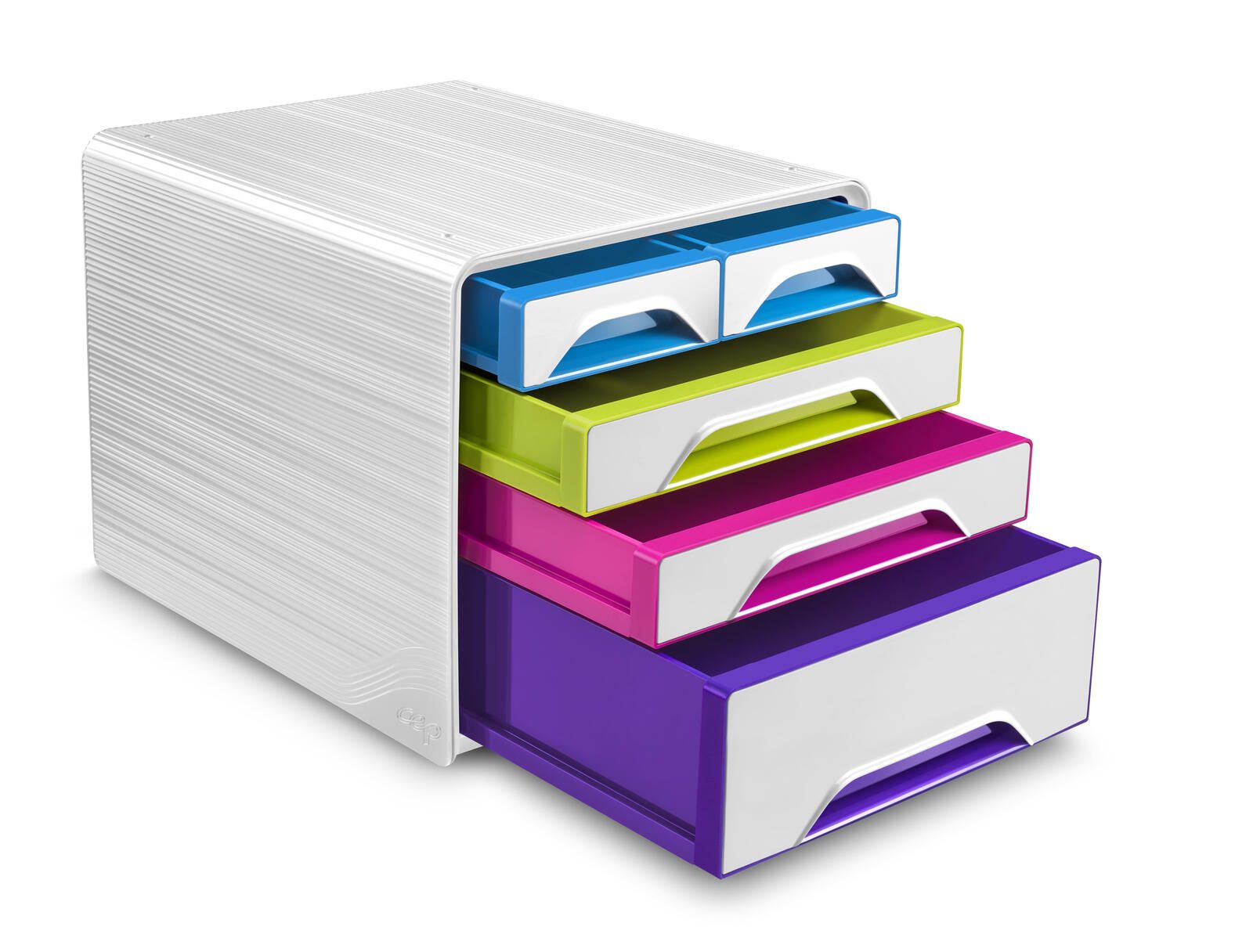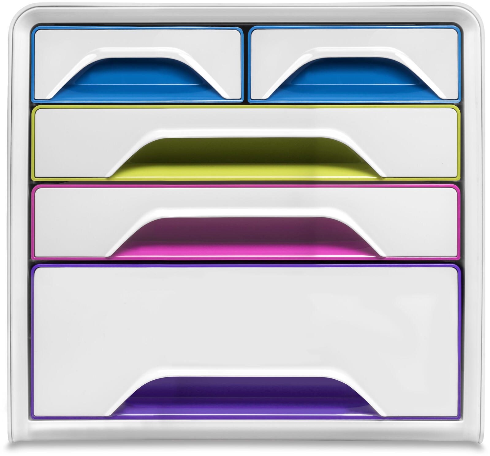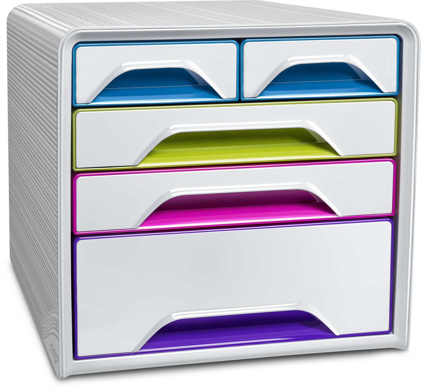 Die Bezeichnung des Herstellers lautet "Box Smoove ws/bunt 5Schübe", was auf die fünf Schubladen hinweist, die dir viel Stauraum bieten. Mit diesen Schubladenboxen hast du deine Dokumente immer griffbereit und übersichtlich geordnet.