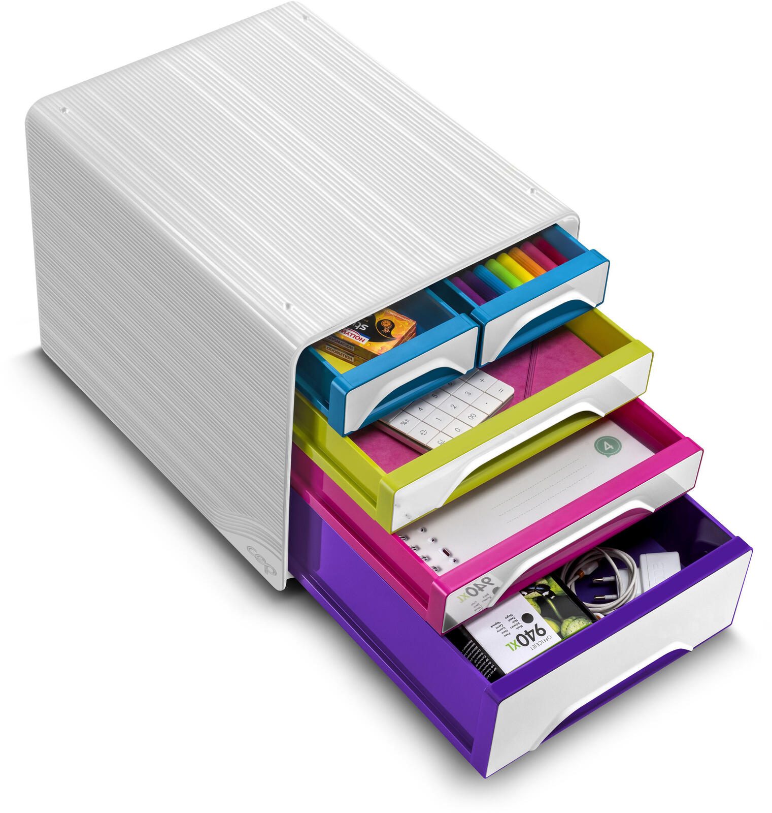 Die Schubladenboxen sind in einem ansprechenden Design mit weiß/bunten Schubladen gehalten, die jedem Raum eine frische Note verleihen. Hergestellt aus hochwertigem Polystyrol sind sie nicht nur robust, sondern auch langlebig.