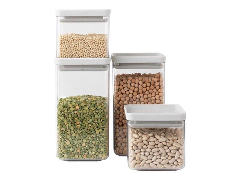 Die Vorratsdosen sind in den Größen 2x 0,7 l und 2x 1,6 l erhältlich. Das bedeutet, dass du Lebensmittel in unterschiedlichen Mengen luftdicht aufbewahren kannst, um ihre Haltbarkeit zu verlängern.