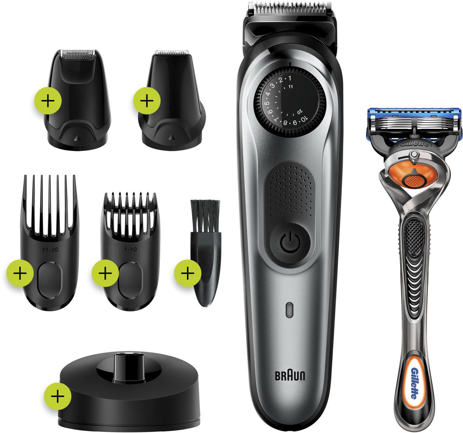 - Lieferung inkl.: Kammaufsatz (1 - 10 mm), Kammaufsatz (11 - 20 mm), Gillette Fusion5 ProGlide razor, Detailtrimmer, Scherblattzusatz, Reinigungsbürste, Ladeständer, Transporttasche, SmartPlug-Ladegerät