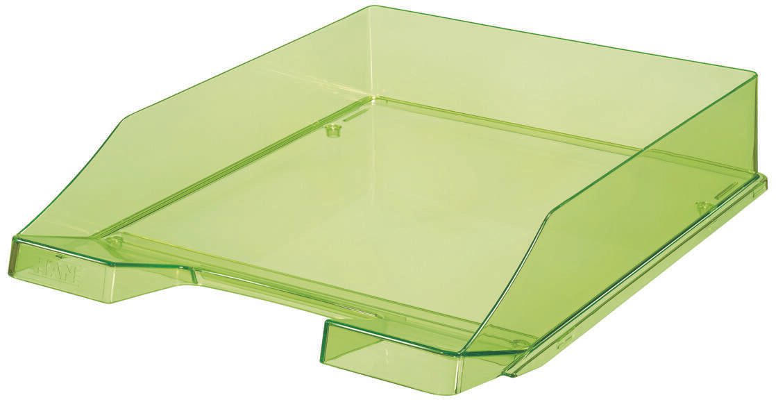 Die HAN Briefablage DIN C4 in grün-transparent ist die ideale Lösung, um deine Dokumente und Unterlagen stilvoll und übersichtlich zu organisieren. Mit ihren großzügigen Außenmaßen von 25,5 x 34,8 x 6,5 cm bietet sie ausreichend Platz für Formate bis DIN C4, sodass du auch größere Dokumente problemlos ablegen kannst. Hergestellt aus antistatischem, schwermetallfreiem Polystyrol, garantiert diese Briefablage nicht nur eine hohe Qualität, sondern auch eine umweltfreundliche Wahl. Das grün-transparente Design verleiht deinem Arbeitsplatz eine frische Note und sorgt dafür, dass deine Unterlagen stets im Blick bleiben. Darüber hinaus ist die Ablage stapelbar, was dir hilft, Platz zu sparen und deine Arbeitsumgebung noch besser zu organisieren. Die HAN Briefablage ist nicht nur funktional, sondern auch ästhetisch ansprechend. Sie fügt sich harmonisch in jedes Büroumfeld ein und unterstützt dich dabei, den Überblick über deine wichtigen Dokumente zu behalten. Dank der hochwertigen Verarbeitung und des durchdachten Designs ist sie ein langlebiger Begleiter für jeden Bürobedarf. Egal, ob du im Homeoffice arbeitest oder ein professionelles Büro führst, die HAN Briefablage DIN C4 in grün-transparent wird schnell zu einem unverzichtbaren Teil deiner Büroausstattung. Sie vereint Funktionalität und Stil und trägt dazu bei, deine Produktivität zu steigern, indem sie eine geordnete und ansprechende Arbeitsumgebung schafft.Technische Daten