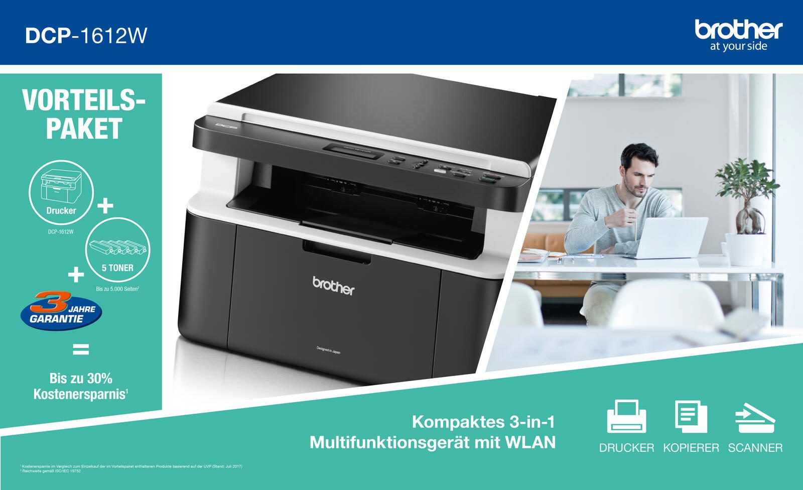 Brother DCP-1612WVB - Multifunktionsdrucker - s/w