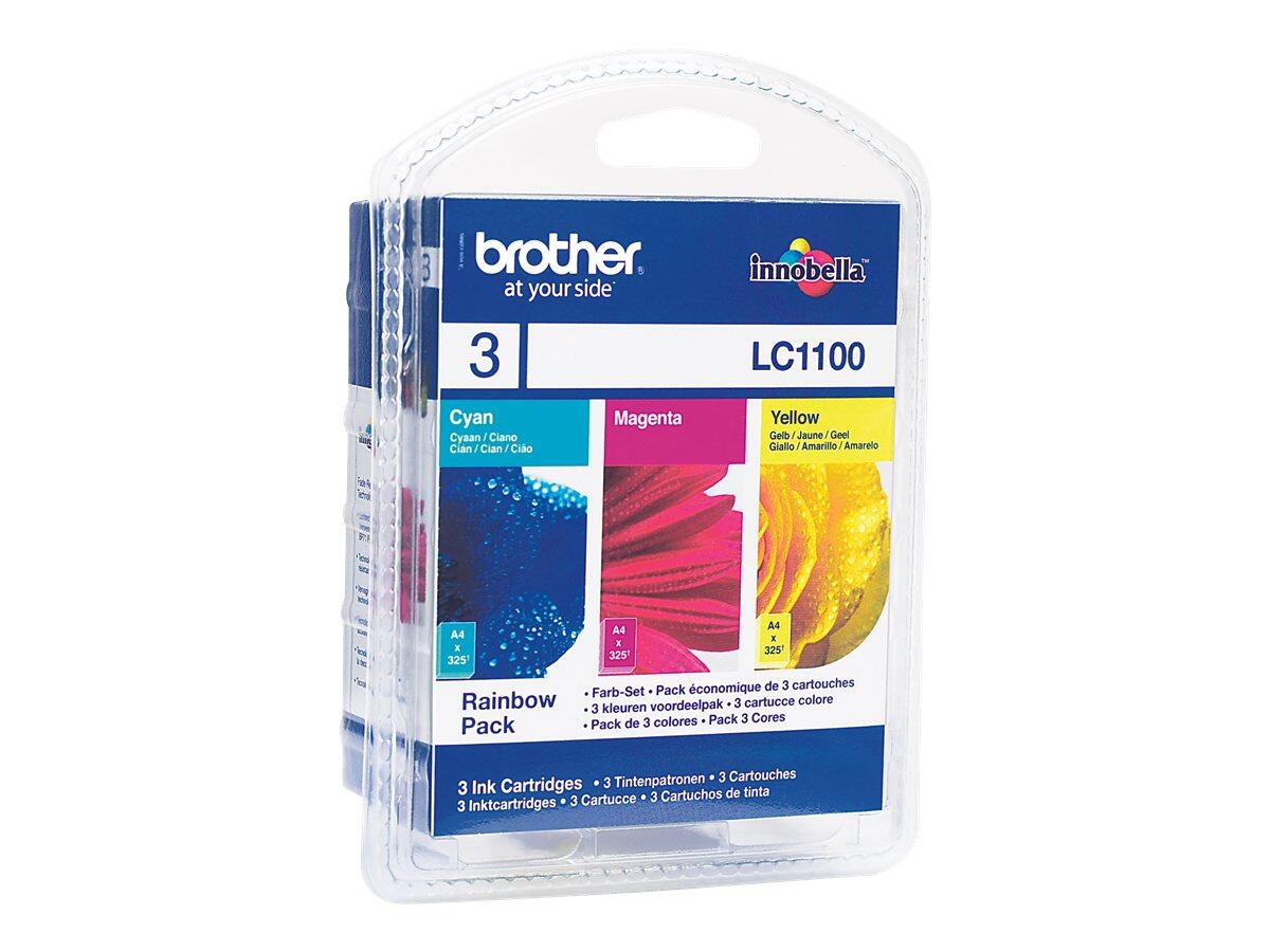 Brother Original LC-1100 Druckerpatronen 3er Multipack C/M/Y 325 Seiten (LC1100RBWBPDR)
