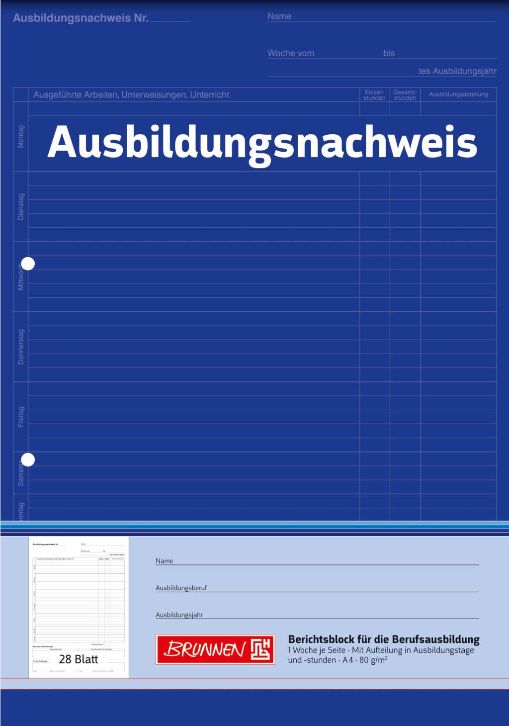 BRUNNEN Formularbuch Ausbildungsnachweis, tägliche Eintragungen 1042572 DIN A4 1x 28 Seiten