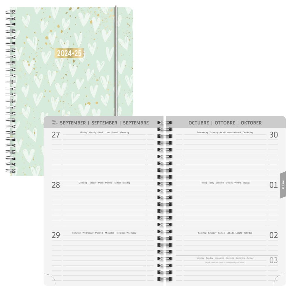 Die weißen Seiten des Kalenders bieten genügend Raum für deine Termine, Hausaufgaben und Notizen. Die Hearts-Serienbezeichnung verleiht dem Kalender zudem eine verspielte Note, die ihn von anderen Modellen abhebt.