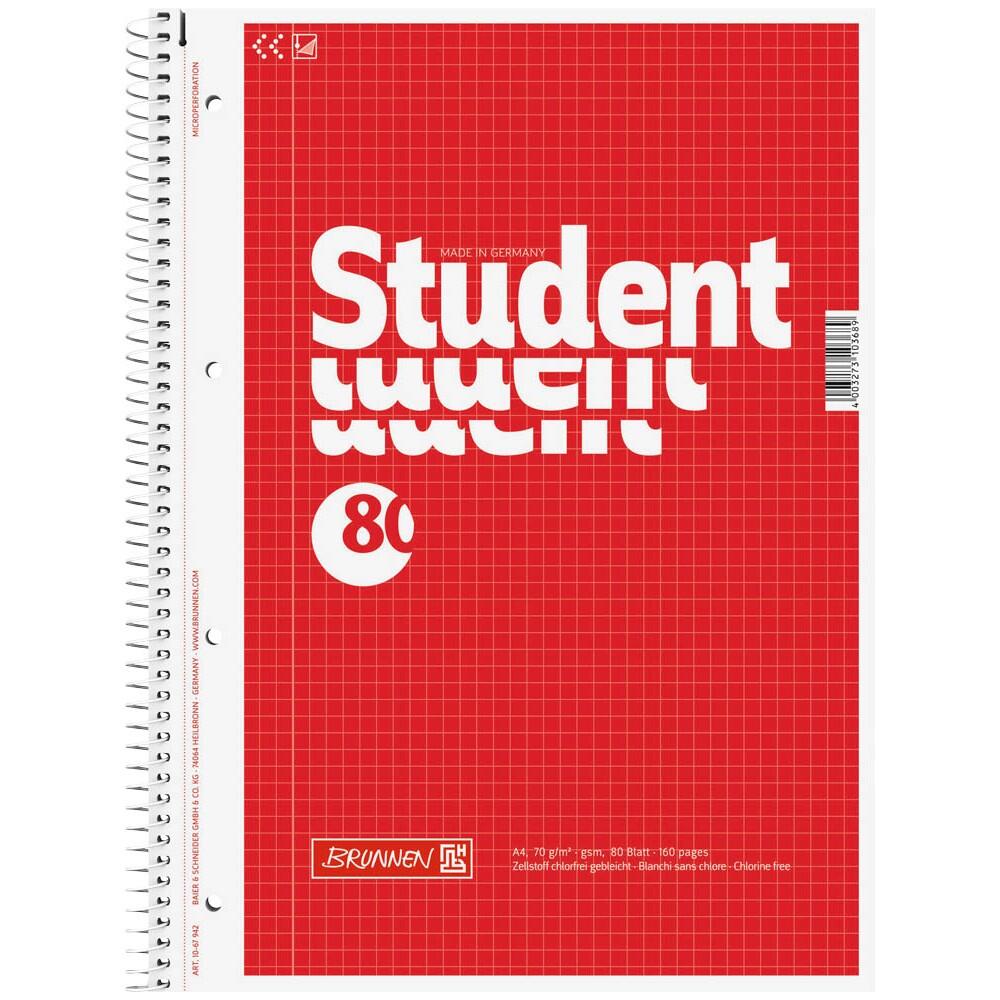 Der BRUNNEN Student Collegeblock ist die ideale Wahl für Schüler und Studenten, die Wert auf Qualität und Funktionalität legen. Mit einem Format von DIN A4 (210 x 297 mm) und einem Gewicht von 70 g/m² bietet dieser Collegeblock eine perfekte Grundlage für Notizen, Skizzen und kreative Ideen. Der Collegeblock besteht aus 80 Blatt, die kariert sind und eine praktische Randlinie innen aufweisen. Dies ermöglicht eine klare Strukturierung deiner Notizen und erleichtert das Ablesen wichtiger Informationen. Die auffällige rote Farbe des Deckblatts sorgt nicht nur für einen ansprechenden Look, sondern macht den Collegeblock auch leicht auffindbar in deinem Schulranzen oder auf deinem Schreibtisch. Die Spiralbindung ermöglicht ein einfaches Umblättern der Seiten und sorgt dafür, dass der Block flach aufliegt, was das Schreiben und Zeichnen angenehm macht. Ein besonderes Highlight ist die Mikroperforation, die das Ausreißen von Seiten zum Kinderspiel macht. Mit vier Löchern ausgestattet, kannst du die Seiten problemlos in einen Ordner abheften. Diese Funktion ist besonders nützlich, wenn du deine Notizen organisieren und jederzeit darauf zugreifen möchtest. Der BRUNNEN Student Collegeblock ist nicht nur praktisch, sondern auch langlebig und robust, sodass er den Anforderungen des Schulalltags problemlos standhält. Egal, ob du für die Schule, das Studium oder persönliche Projekte schreibst, dieser Collegeblock wird dich durch seine Vielseitigkeit und Benutzerfreundlichkeit überzeugen.Technische Daten
