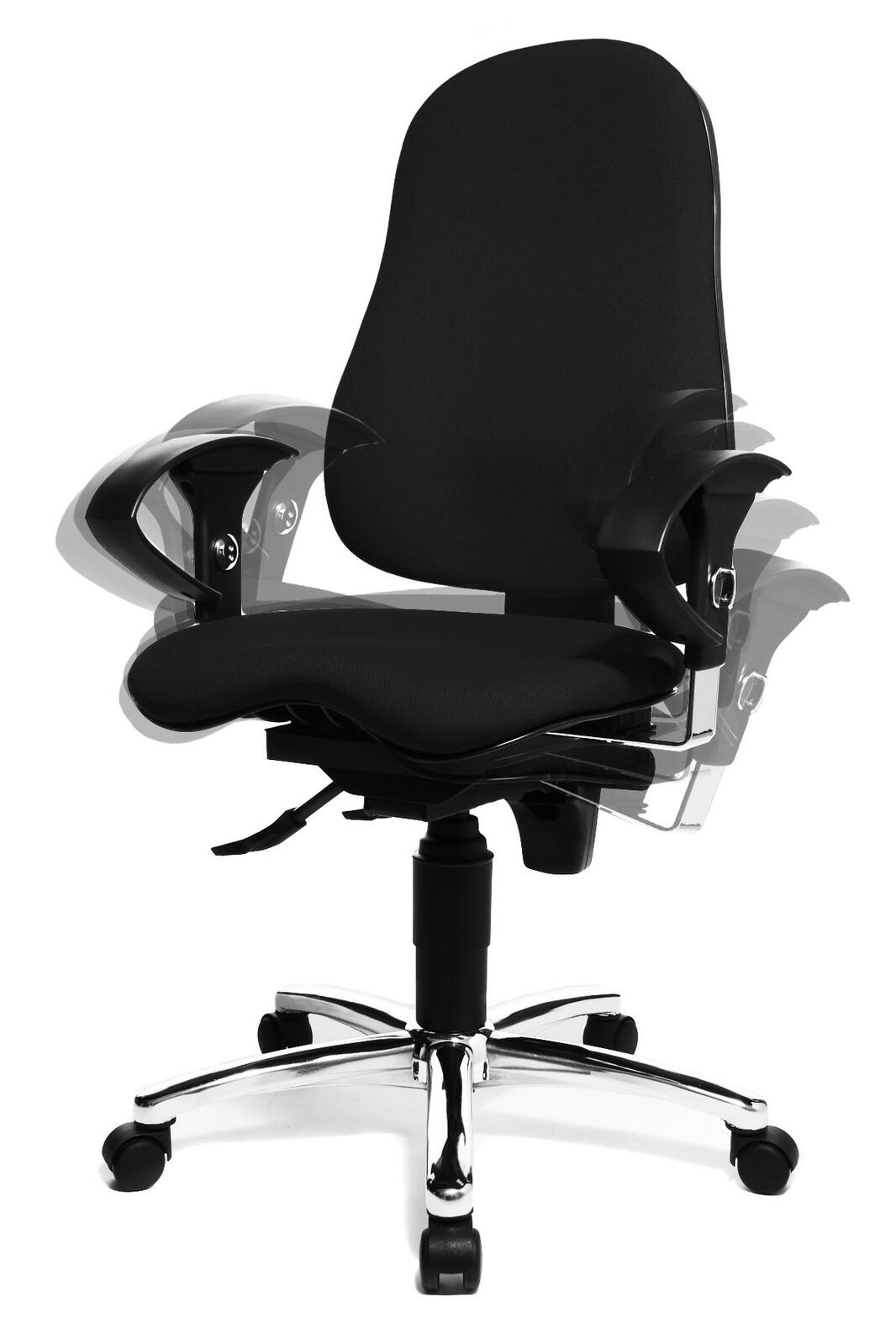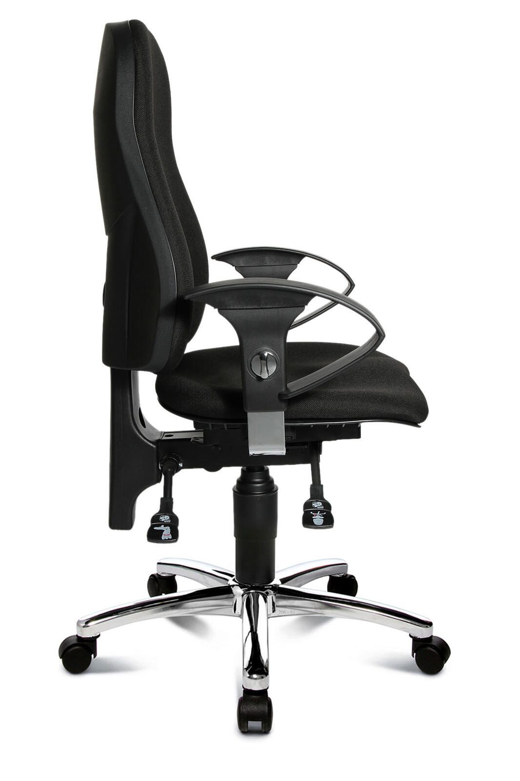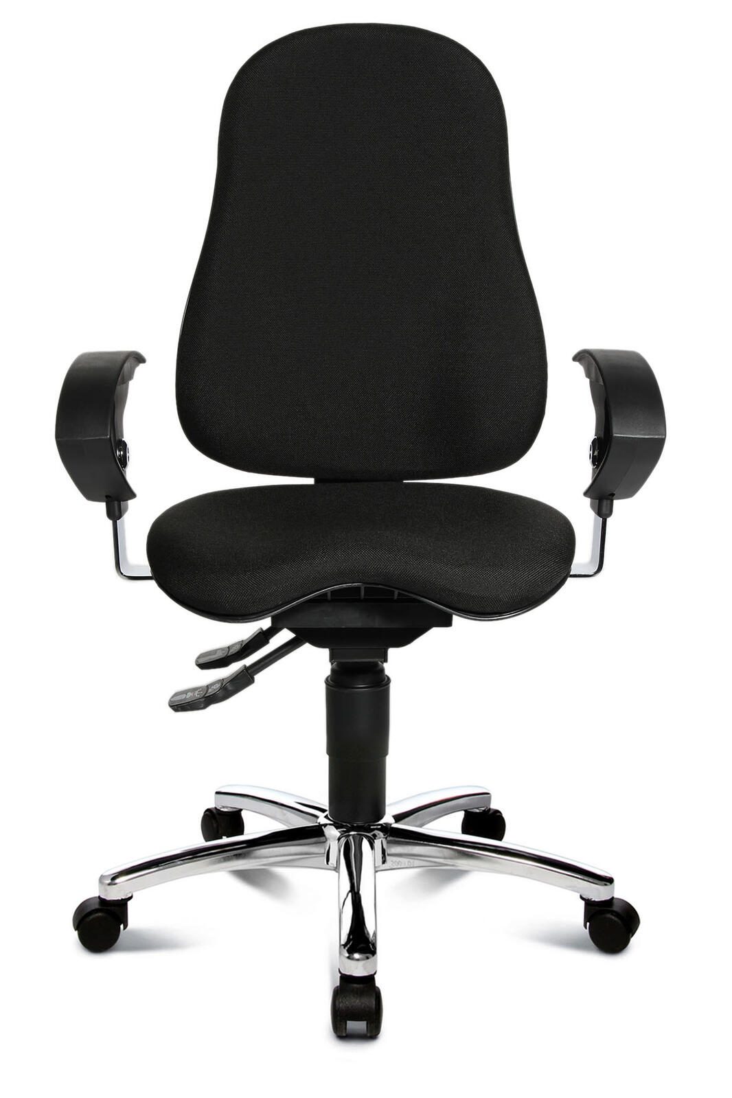 Der Topstar Bürostuhl Sitness 10 in elegantem Schwarz vereint modernes Design mit herausragendem Komfort und Funktionalität. Mit einer Sitzhöhe von 46,0 bis 56,0 cm lässt sich dieser Stuhl individuell an deine Bedürfnisse anpassen, sodass du stets in der optimalen Position sitzt. Die höhenverstellbaren Armlehnen bieten zusätzlichen Komfort und Unterstützung, während die Polster-Rückenlehne für eine angenehme Entlastung des Rückens sorgt. Die innovative Permanent-Kontakt-Mechanik mit BODY-BALANCE-TEC® fördert eine dynamische Sitzhaltung und unterstützt die natürliche Bewegung deines Körpers. Dadurch eignet sich der Sitness 10 ideal für lange Arbeitstage, da er eine empfohlene Sitzdauer von bis zu 8 Stunden ermöglicht. Die Neigung der Rückenlehne ist verstellbar, was dir die Flexibilität gibt, die Rückenlehne an deine persönlichen Vorlieben anzupassen und somit eine ergonomische Sitzhaltung zu gewährleisten. Die Doppelrollen sind speziell für Teppichböden konzipiert und garantieren eine mühelose Mobilität im Büro. Mit einer Scheuerfestigkeit von 40.000 Scheuertouren ist der Bezug des Stuhls äußerst strapazierfähig und langlebig. Der Rahmen aus hochwertigem Stahl in Chromoptik verleiht dem Stuhl nicht nur Stabilität, sondern auch eine ansprechende Ästhetik. Der orthositz sorgt für eine gesunde Sitzposition und ist für Nutzer mit einer Größe von bis zu 192,0 cm geeignet. Der Topstar Bürostuhl Sitness 10 ist somit die perfekte Wahl für alle, die Wert auf Komfort, Ergonomie und Stil legen. Er passt sich nicht nur deinem Körper, sondern auch deinem Arbeitsumfeld optimal an und sorgt dafür, dass du dich auf das Wesentliche konzentrieren kannst.Technische Daten