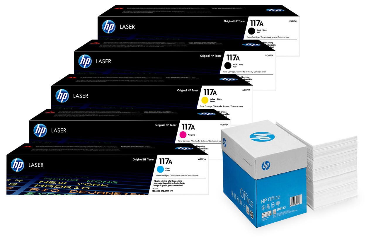 Bundle mit HP Original 117A Toner 5er Multipack + 2.500 Blatt HP Kopierpapier hochweiß
