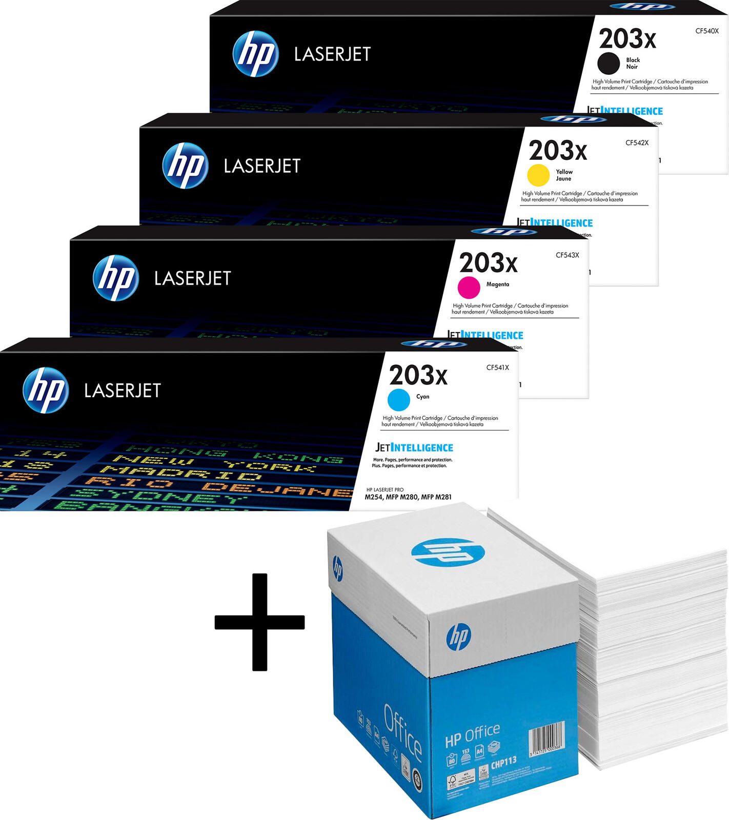 Bundle mit HP Original 203X Toner 4er Multipack + 2.500 Blatt HP Kopierpapier hochweiß