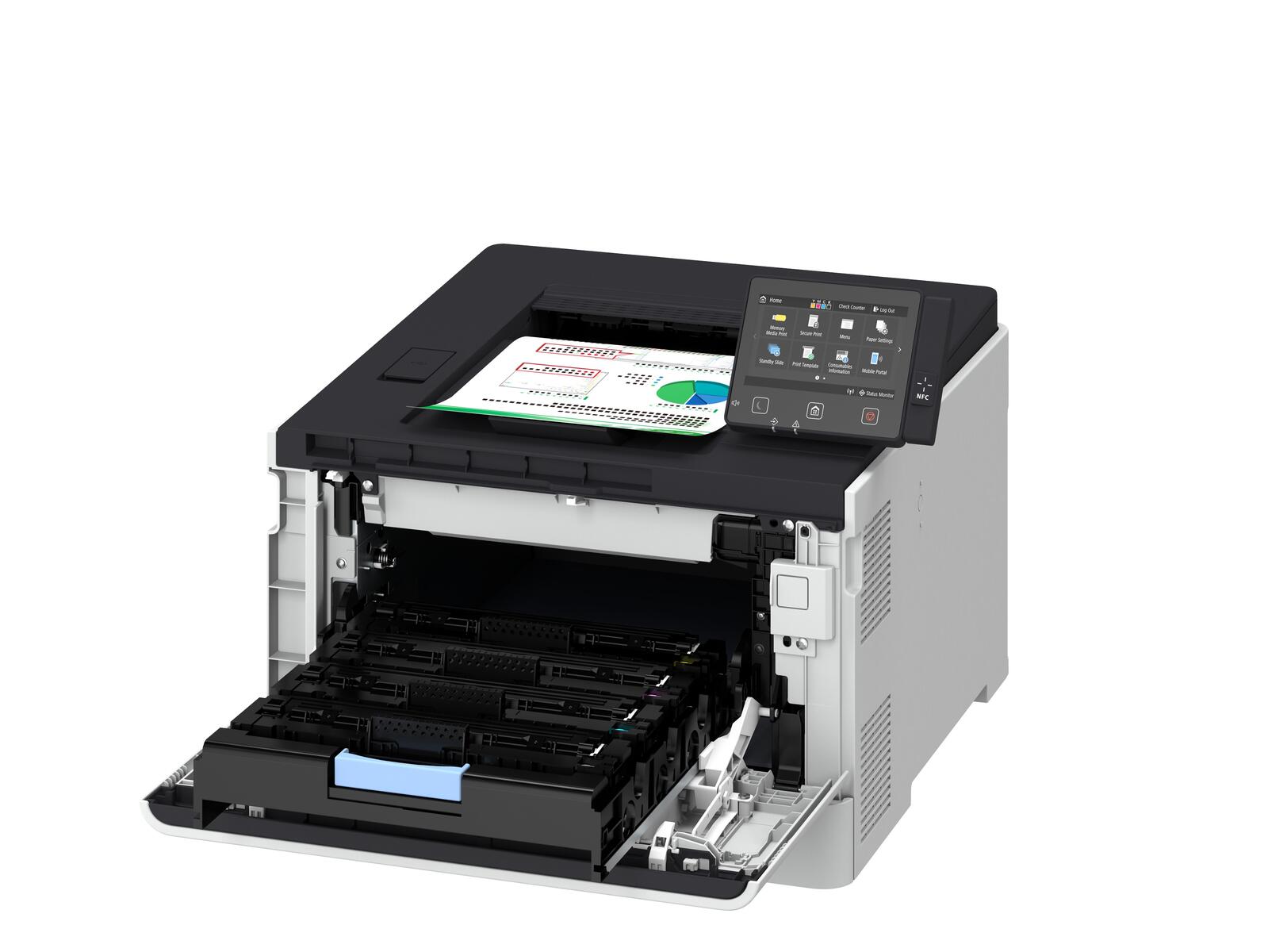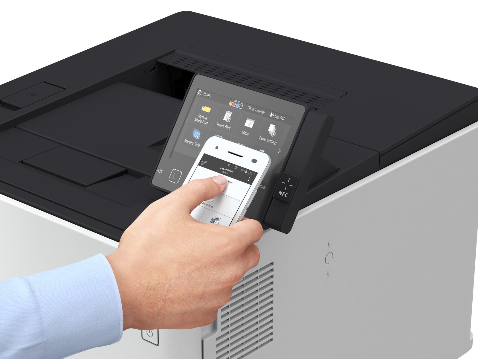 Der Canon i-SENSYS-Farblaserdrucker kann per W-LAN oder Ethernet als Netzwerkdrucker verwendet werden. Über die Standards „WiFi Direct“ und „NFC“ kann er direkt von entsprechend ausgestatteten Endgeräten angesteuert werden. Für mobiles Drucken via Smartphone oder Tablet PC kommuniziert der Drucker über „Apple Airprint“, „Google Cloudprint“, „Mopria“ oder „Canon Print Business“. Sie bedienen den i-SENSYS direkt über ein 12,7 cm großes Touch-Display. Hier können Sie in der Anwendungsbibliothek individuelle Direkttasten erstellen, um häufig benötigte Vorgänge zu beschleunigen. Der i-SENSYS verfügt über eine 250 Blatt fassende DIN A4-Papierkassette und eine Mehrzweckkassette für weitere 50 Blatt. Als Zubehör ist eine Kassette für 550 Blatt erhältlich.