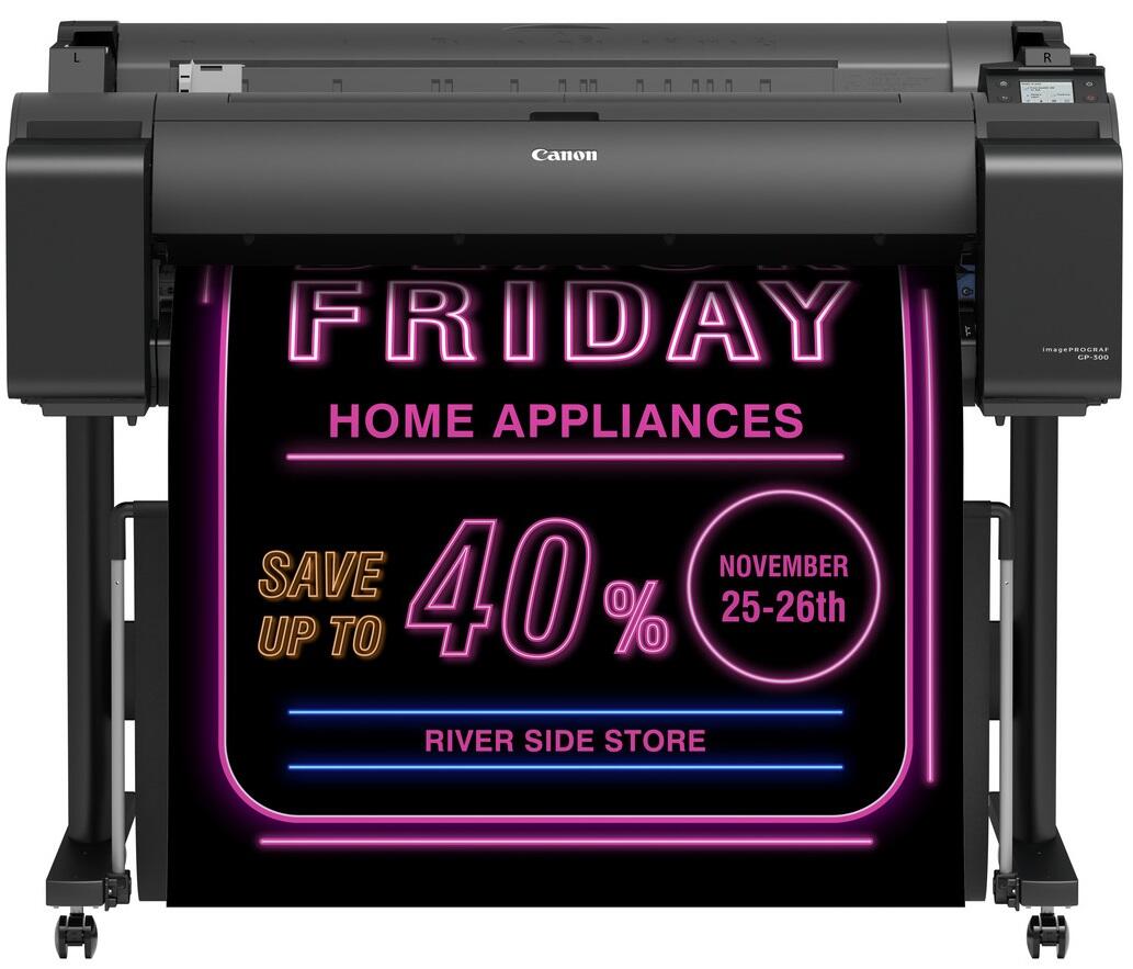 Mit einem 91,44 cm breiten 6-Farben-Großformatdrucker (36 Zoll) mit neu entwickelter fluoreszierender pinker Tinte können Sie Plakate in Premiumqualität erstellen, die einen bleibenden Eindruck hinterlassen.
