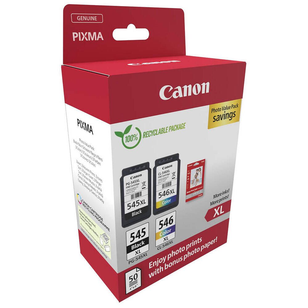 Canon PG-545XL/CL-546XL Photo Paper Value Pack - 2er-Pack - Hohe Ergiebigkeit - Schwarz, Farbe (Cyan, Magenta, Gelb) - original - Tintenpatrone / Papierkit