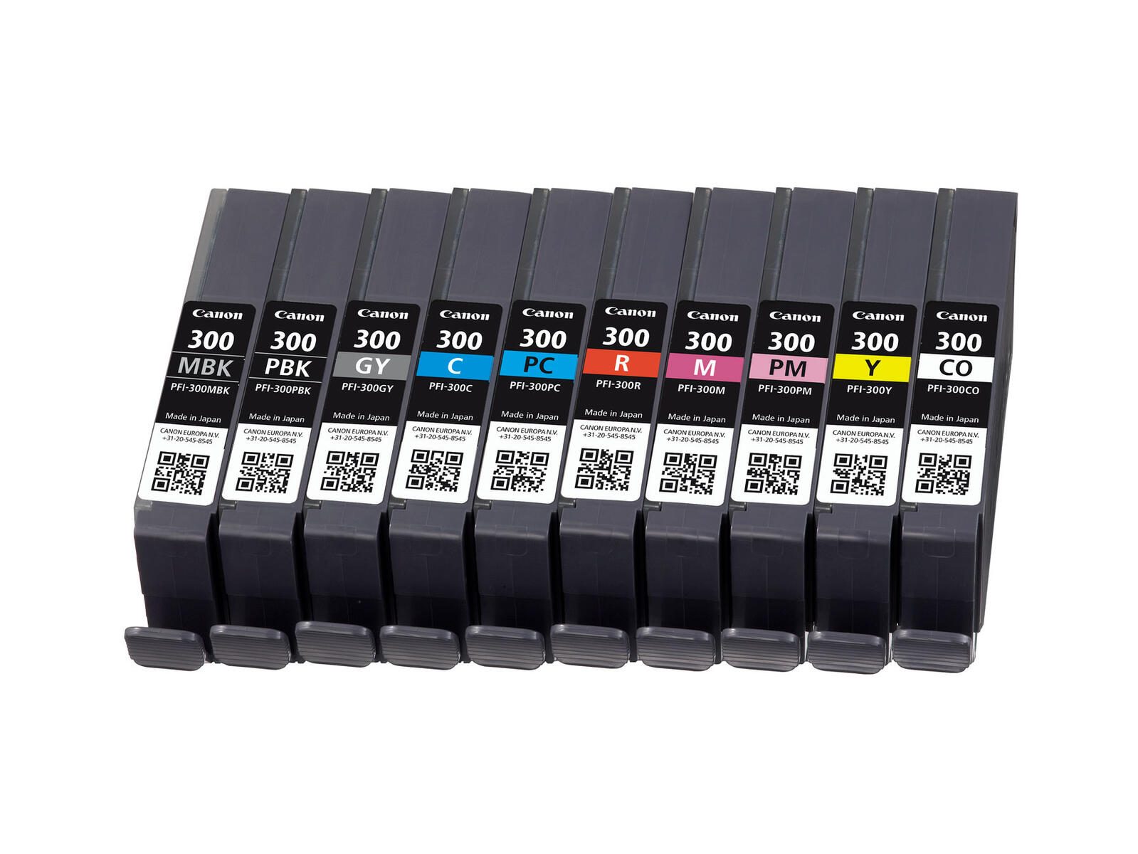 Canon Original PFI-300 Druckerpatronen - 10er Multipack C, M, Y, PBK, MBK, GY, PC, PM, R, CO