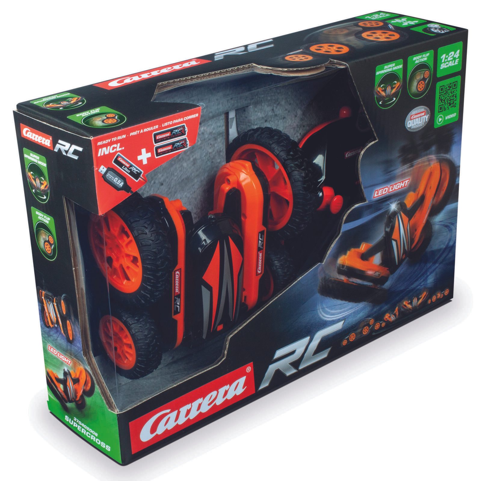 Das Carrera® Ferngesteuerte Auto orange vereint Stil, Geschwindigkeit und Vielseitigkeit in einem einzigen Produkt. Es ist die perfekte Wahl für alle, die das Abenteuer lieben und sich auf eine rasante Fahrt begeben möchten. Mit diesem Modell bist du bestens ausgestattet, um in die Welt der ferngesteuerten Autos einzutauchen und unvergessliche Momente zu erleben.