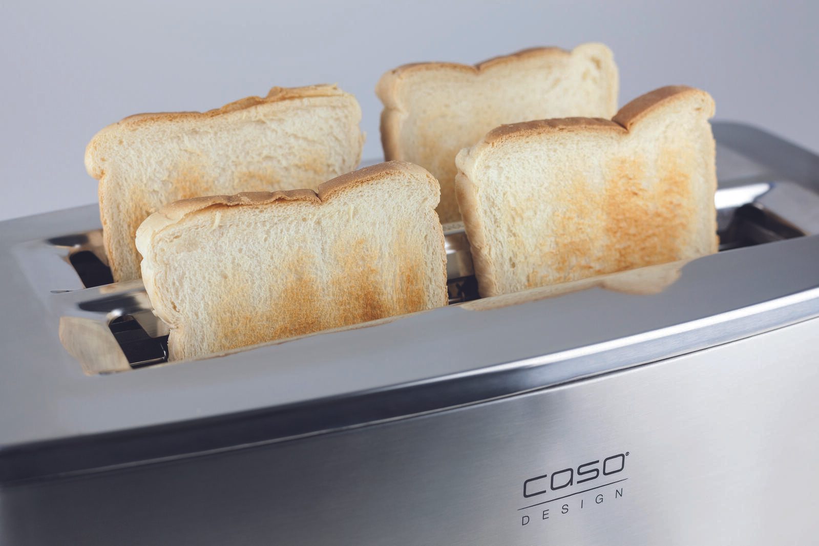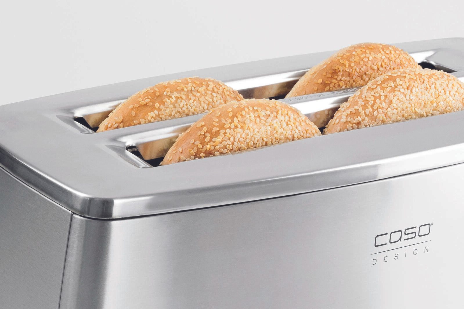 Entdecke den Caso Toaster Inox4 in eleganter silberner Farbe. Dieser Toaster besticht nicht nur durch sein modernes Design, sondern auch durch seine hochwertige Verarbeitung und praktischen Funktionen. Der Caso Toaster Inox4 ist mit einer LED-Anzeige ausgestattet, die dir eine einfache und intuitive Bedienung ermöglicht. Die extra langen Röstschächte bieten Platz für verschiedene Brotsorten und sorgen dafür, dass dein Toast gleichmäßig und perfekt geröstet wird. Als Toaster der Marke caso® überzeugt der Inox4 nicht nur durch sein ästhetisches Erscheinungsbild, sondern auch durch seine hohe Funktionalität. Das silberne Design verleiht deiner Küche eine moderne Note und macht den Toaster zu einem Blickfang in deinem Zuhause. Mit dem Caso Toaster Inox4 kannst du morgens ganz einfach und bequem dein Lieblingstoast zubereiten und den Tag mit einem perfekten Frühstück starten. Dank seiner hochwertigen Verarbeitung und innovativen Features ist dieser Toaster die ideale Ergänzung für deine Küchenausstattung. Erlebe erstklassige Qualität und modernes Design mit dem Caso Toaster Inox4 - dein zuverlässiger Begleiter für köstlich gerösteten Toast jeden Tag.Technische Daten