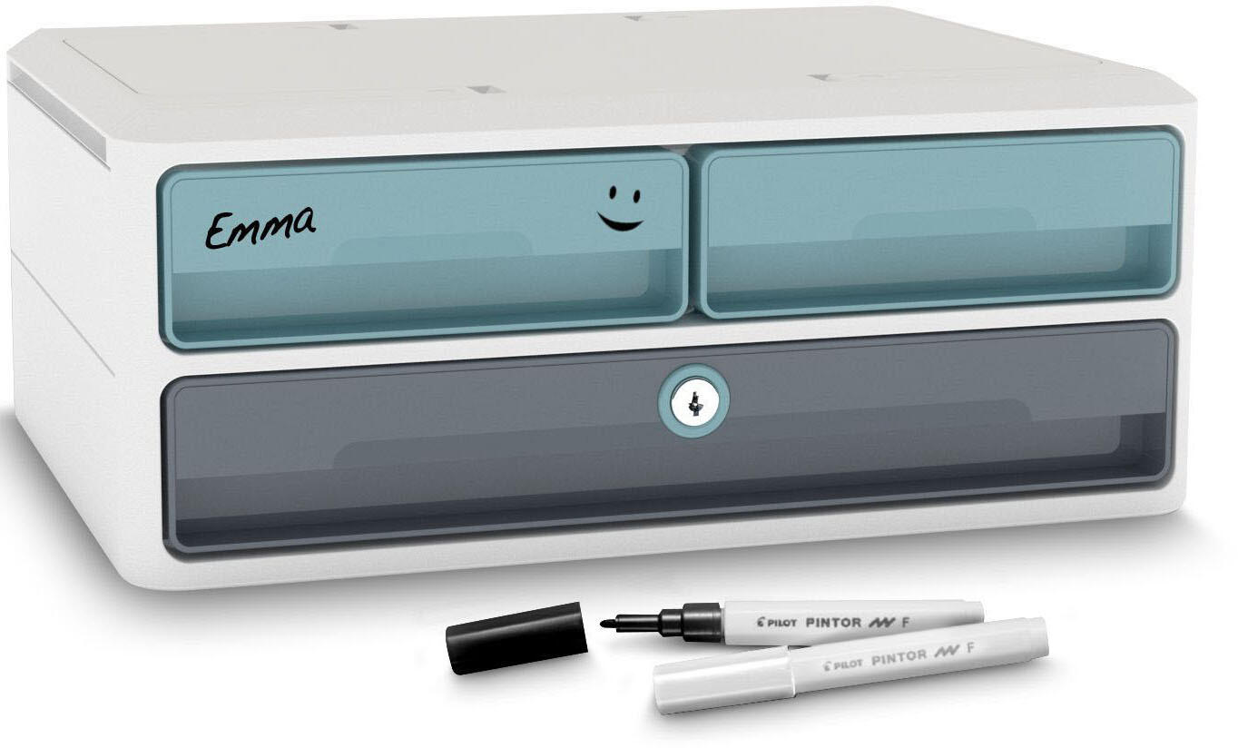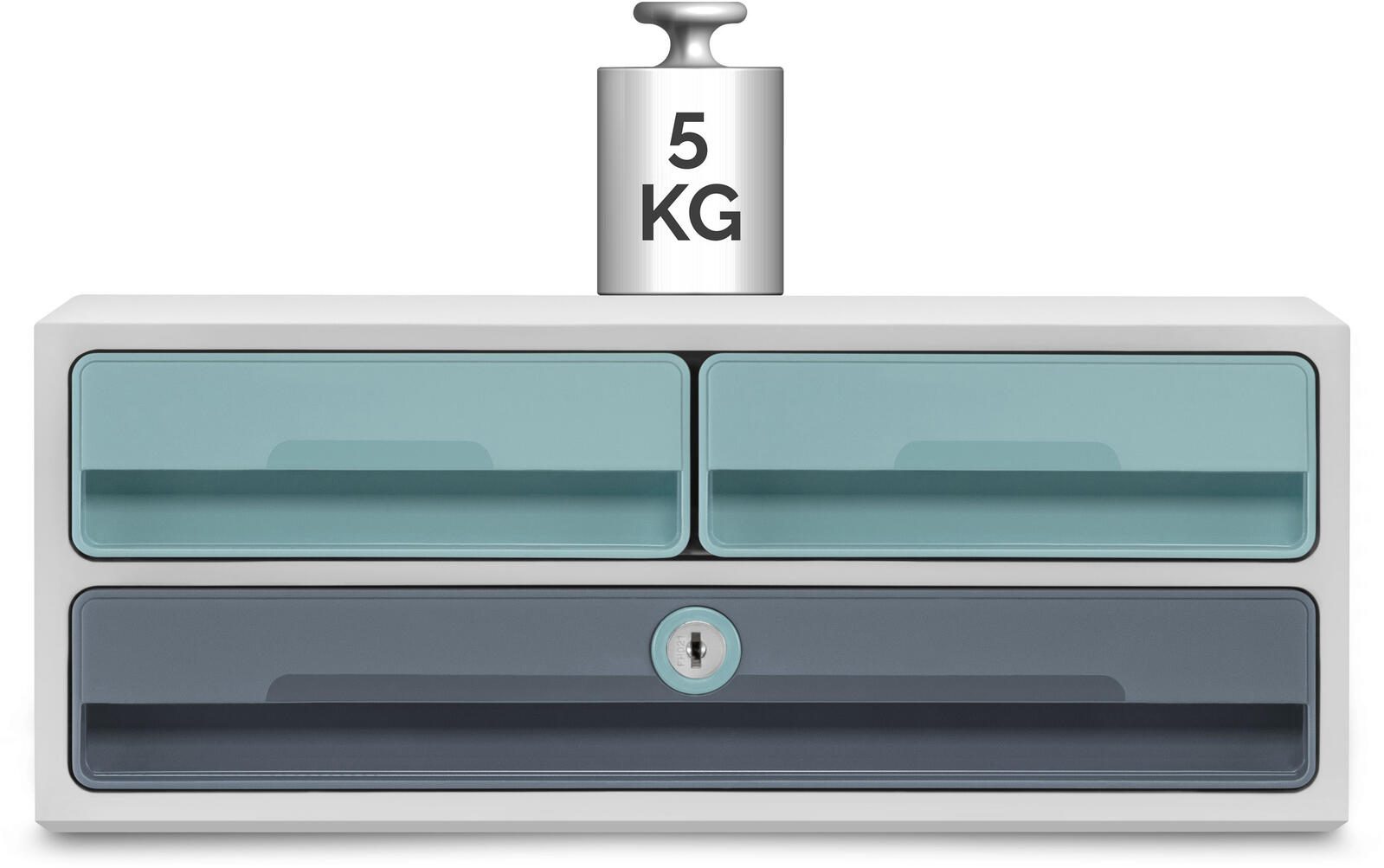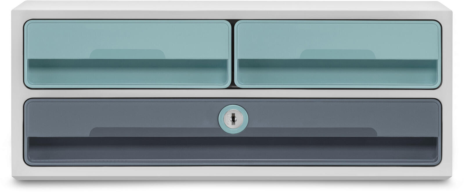Die cep Schubladenbox 1091212961 ist die perfekte Lösung für die Organisation deiner Unterlagen und Büromaterialien. Mit ihren kompakten Maßen von 37,0 x 27,5 x 14,6 cm passt sie problemlos in jedes Regal oder auf deinen Schreibtisch. Diese Schubladenbox überzeugt nicht nur durch ihr funktionales Design, sondern auch durch ihre ansprechenden Farben in mint und grau, die deinem Arbeitsplatz einen frischen Akzent verleihen. Ein besonderes Highlight der cep Schubladenbox ist die Ausführung mit Tragegriff und Schloss, die es dir ermöglicht, alle drei Schubladen sicher zu verriegeln. So kannst du deine wertvollen Dokumente und Utensilien jederzeit geschützt aufbewahren. Das Material, aus dem die Box gefertigt ist, besteht aus recycelbarem Polystyrol, was nicht nur umweltfreundlich ist, sondern auch für eine hohe Langlebigkeit sorgt. Die Schubladenbox ist stapelbar, was dir zusätzliche Flexibilität bei der Anordnung deiner Arbeitsmaterialien bietet. Du kannst mehrere Boxen übereinanderstapeln, um Platz zu sparen und gleichzeitig den Überblick zu behalten. Die durchdachte Konstruktion und die praktischen Funktionen machen die cep Schubladenbox zu einem unverzichtbaren Begleiter in jedem Büro oder Home Office. Die Kombination aus Funktionalität, ansprechendem Design und umweltfreundlichem Material macht die cep Schubladenbox 1091212961 zu einer idealen Wahl für jeden, der Wert auf Ordnung und Stil legt.Technische Daten