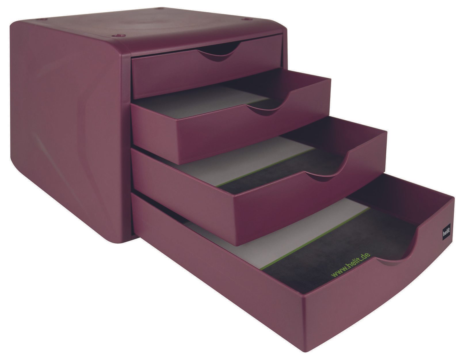 Die helit Schubladenboxen "the green chameleon" in der Farbe Bordeaux sind die perfekte Lösung zur Organisation deines Arbeitsplatzes. Mit Maßen von 26,5 x 33,2 x 21,5 cm und speziell für das Format DIN A4 entwickelt, bieten sie dir eine praktische Aufbewahrungslösung, die sich harmonisch in jedes Arbeitsumfeld einfügt.