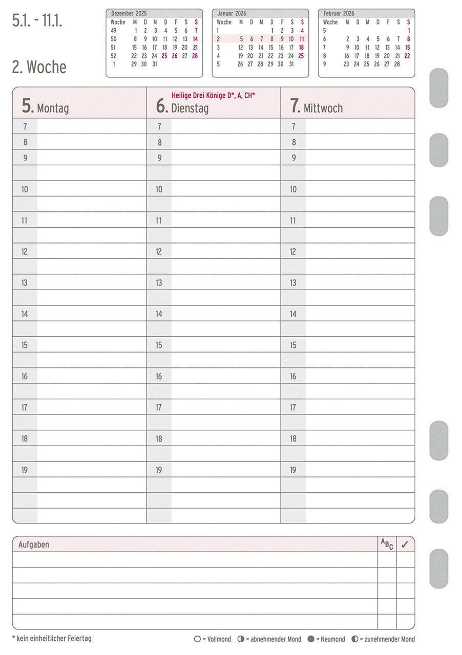 - 53 Wochenpläne, Brieftaschenplaner, 12 Monatspläne, Jahresplan 2026 und 2027, Jahresprojektplan 2026 und 2027, Kosten-Termin-Jahresplan, Ferienplan, Übersicht Feiertage