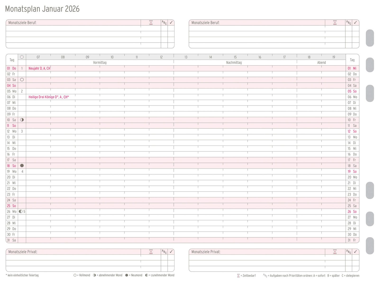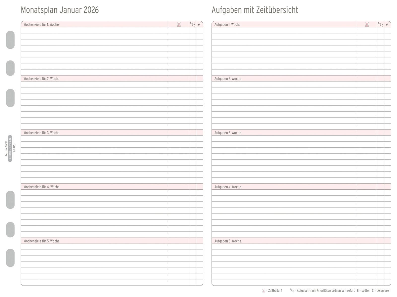CHRONOPLAN Kalendereinlage Monatsplan A5 2026