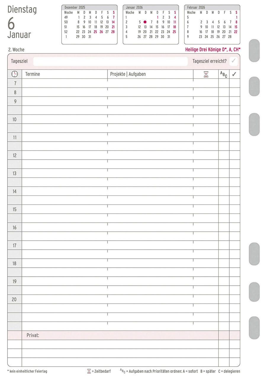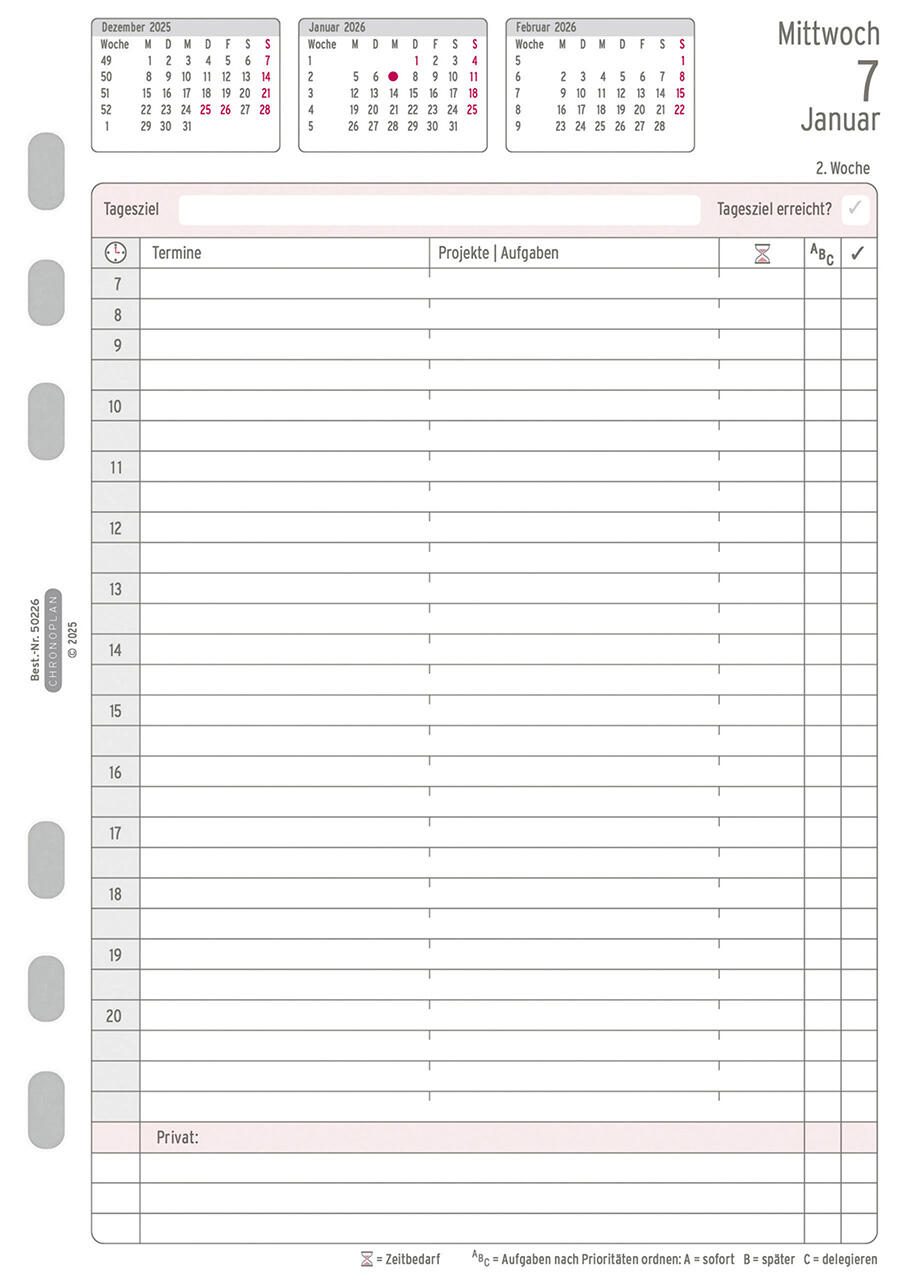 CHRONOPLAN Kalendereinlage Tagesplan A5 2026